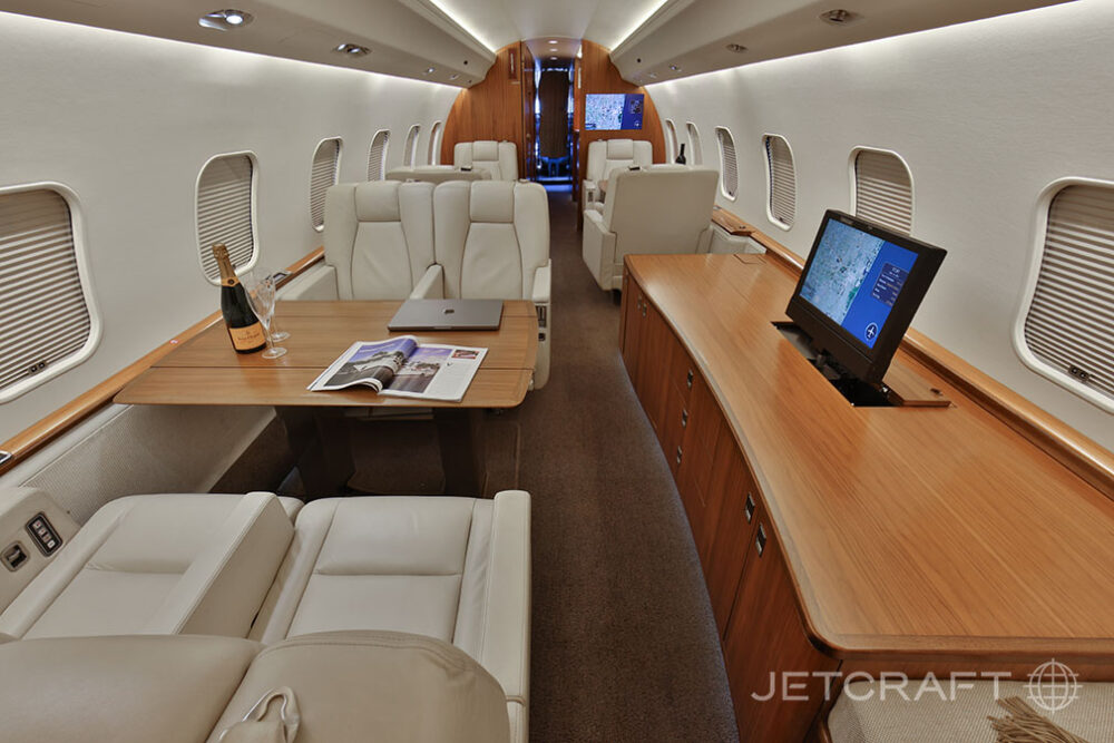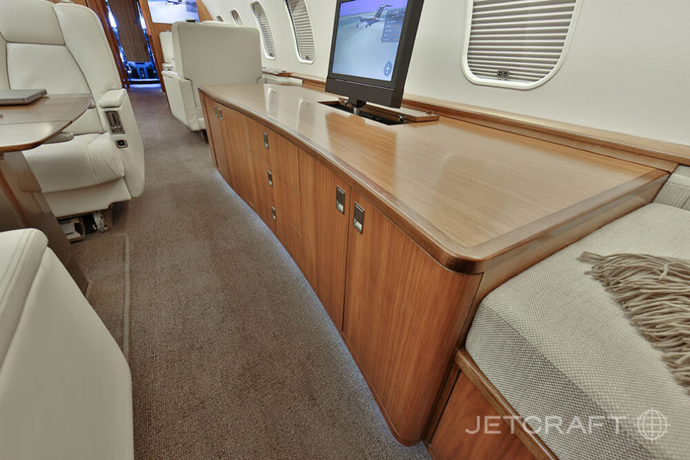Number of Passengers - Thirteen (13) Galley Location - Forward Forward Cabin Configuration - Four (4) Place Double Club Mid Cabin Configuration - (4) Place Conference Group Opposite Credenza Aft Cabin Configuration - Two (2) Place Club Opposite Three (3) Place Divan (16G) Lavatory Location(s) - Forward Crew and Aft Executive Crew Rest - Yes Jumpseat - Yes Last Refurbished Date - 2016 |