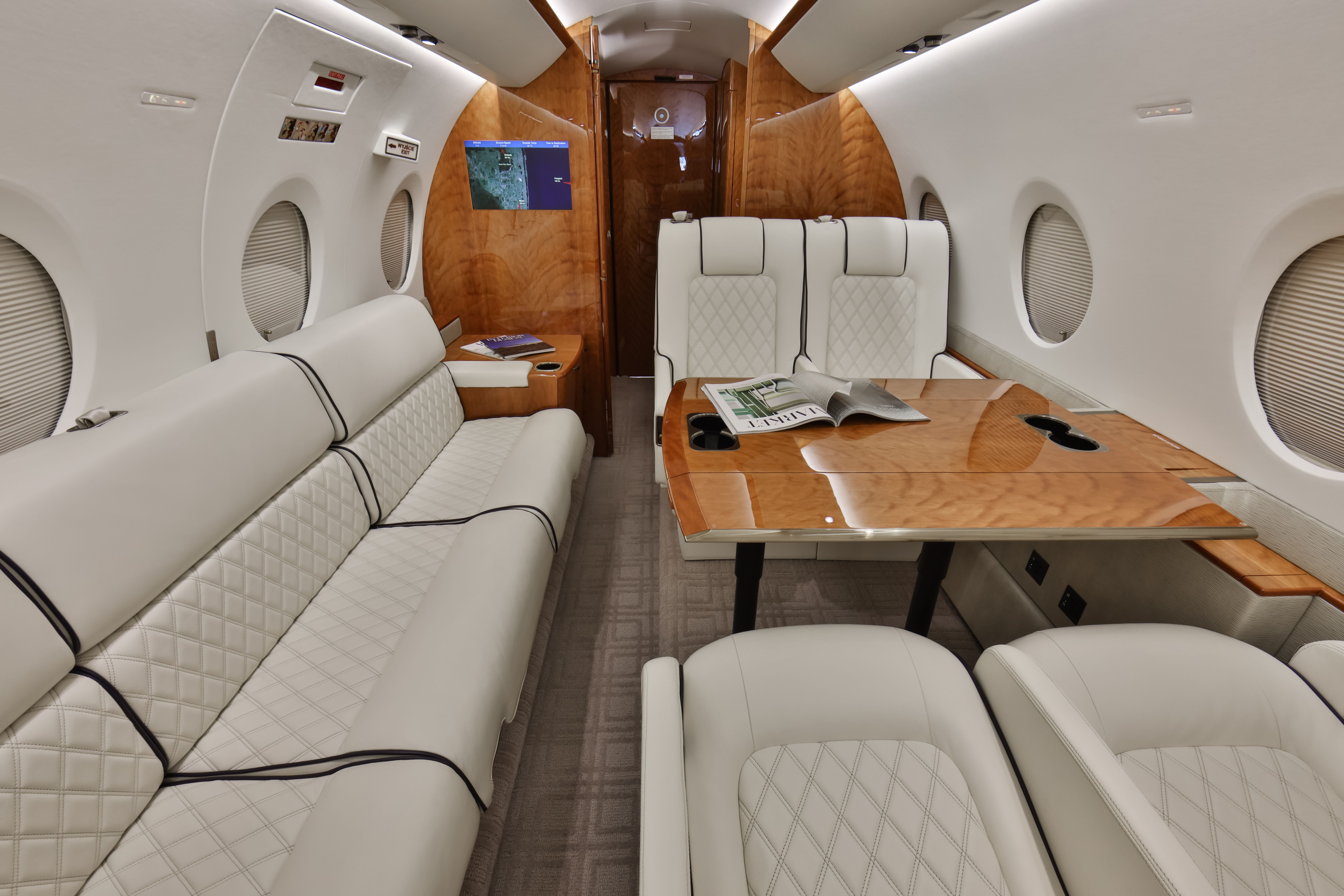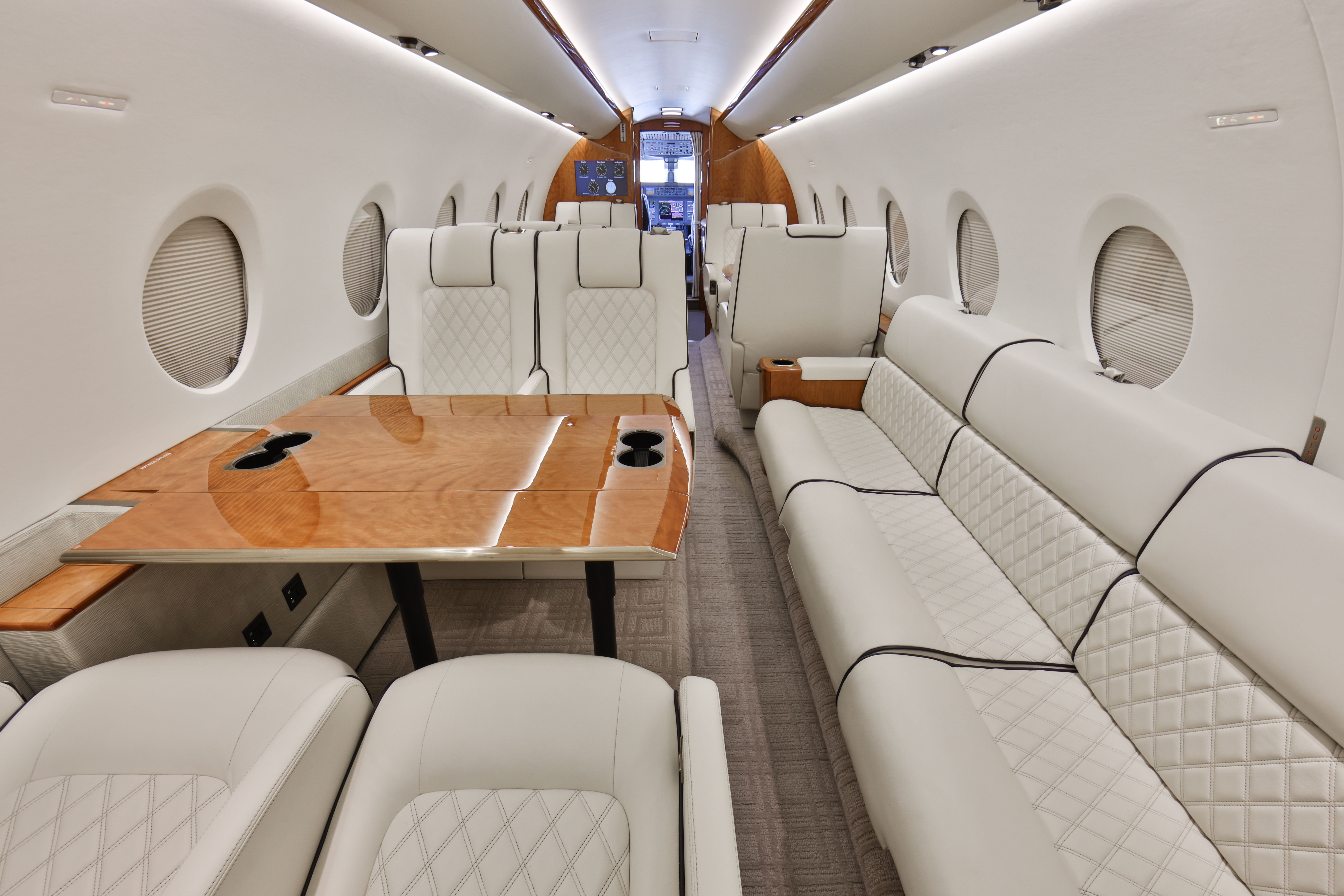 COMPLETION DETAILS Interior New: 2022 SEATING DETAILS 3 Crew + 10 Passengers Fwd 4-Place Club, Mid , Aft 2-Place Divan opp. 4-Place Conference Group CABIN AMENITIES GoGo AVANCE L5 WiFi Fwd & Aft 19" Bulkhead Monitors Gulfstream CabinView Dual Blu-ray DVD/CD Players w/ USB Ports GALLEY Fwd Configuration 110V AC Power Ample Storage Space LAVATORY Solid Privacy Door Mirrored Sink & Vanity |
