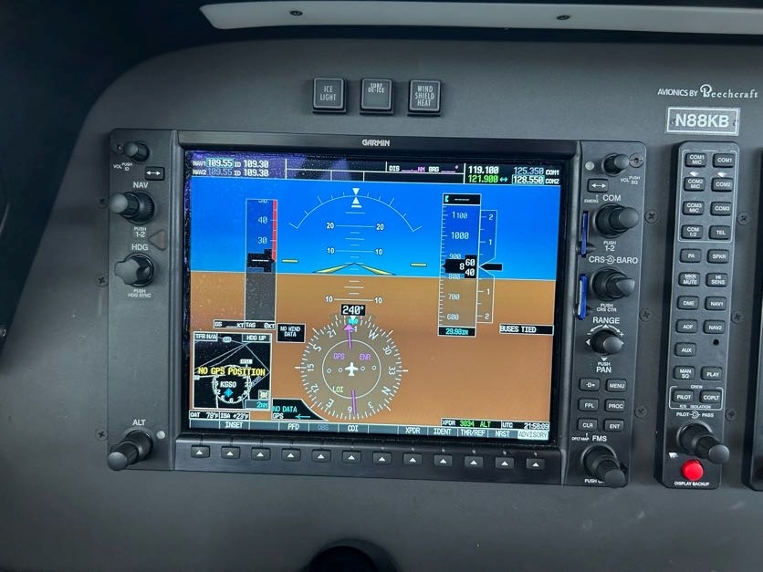 GARMIN G1000 FULLY INTEGRATED GLASS PANEL FLIGHT DECK NAV/COMM’s GARMIN GIAW 63W NAV/COM/GPS w/ Glideslope AUDIO PANEL GARMIN GMA-1347 Audio and Marker Beacons GPS DUAL GARMIN IFR – C129A approved GPS PFD MOVING MAP GARMIN 10.4” high resolution Primary Flight Display MFD MOVING MAP GARMIN 10.4” high resolution multi-function Display AHRS 1 GARMIN GRS-77 Altitude Heading and Reference System EIS Engine Indication Advisory System on MFD or PFD TRANSPONDER GARMIN GTX 330ES w/ ADS-B OUT ACTIVE TRAFFIC GARMIN 820 ACTIVE TRAFFIC SYSTEM XM WEATHER GARMIN GDL 69A WX Weather & XM Music CHARTVIEW JEPPESEN CHARTVIEW (Subscription required) TAWS – B INTEGRATED TAWS TERRAIN AWARENESS SYSTEM AUTOPILOT GARMIN GFC 700 Flight Control System w EFIS PFD ALT PRESELECT GARMIN Altitude and Vertical Speed Selector in GFC-700 BEECH AVIONICS MASTER SWITCH |