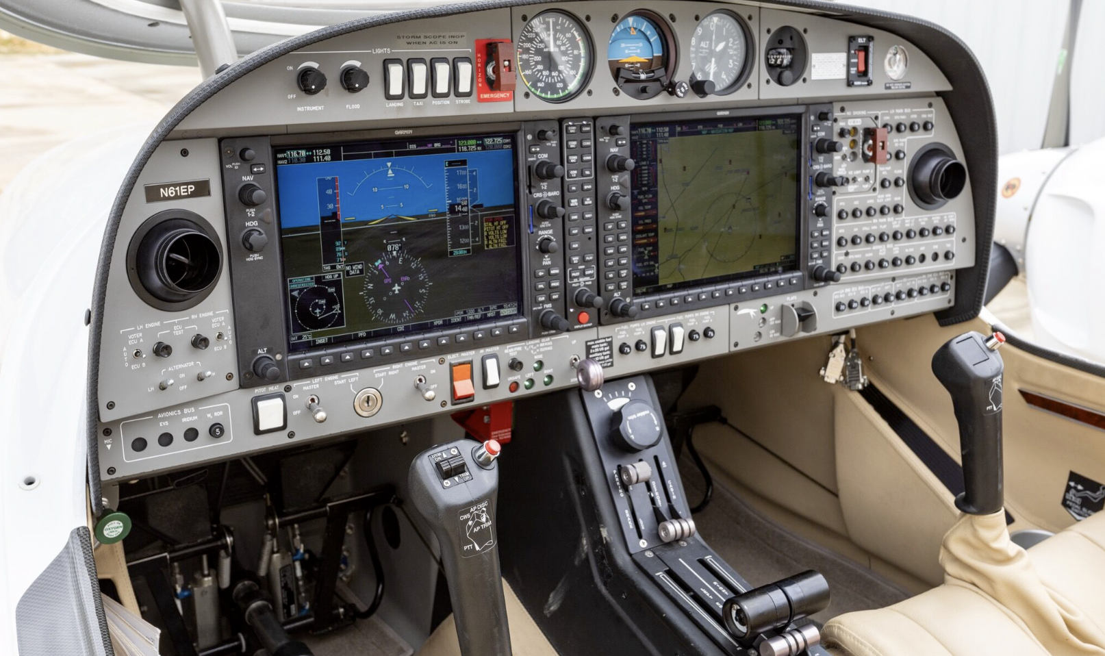 Garmin G1000 WX-500 Stormscope Avidyne Active Traffic System Garmin GTX 345 ADS-B In & Out Transponder XM Weather SVT Yaw Damper Active Traffic Terrain Warning System Engine Monitor |