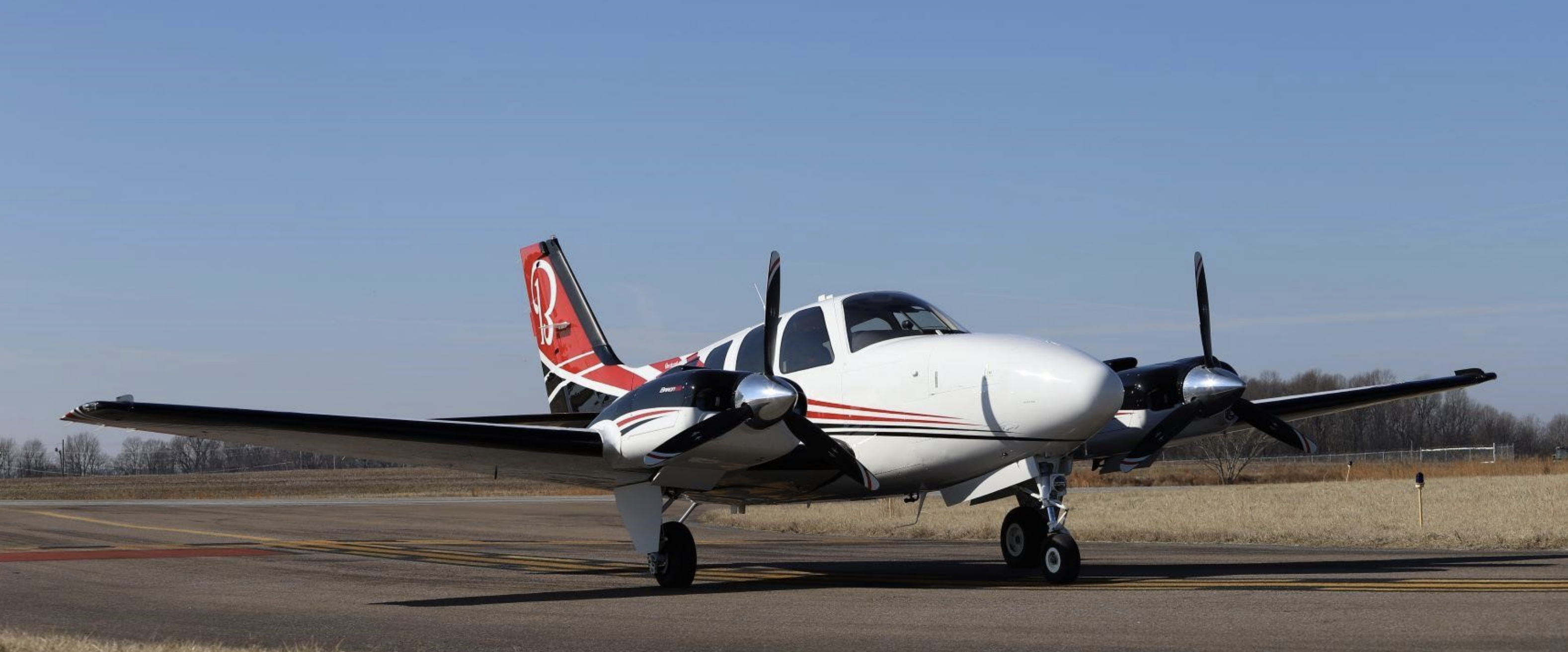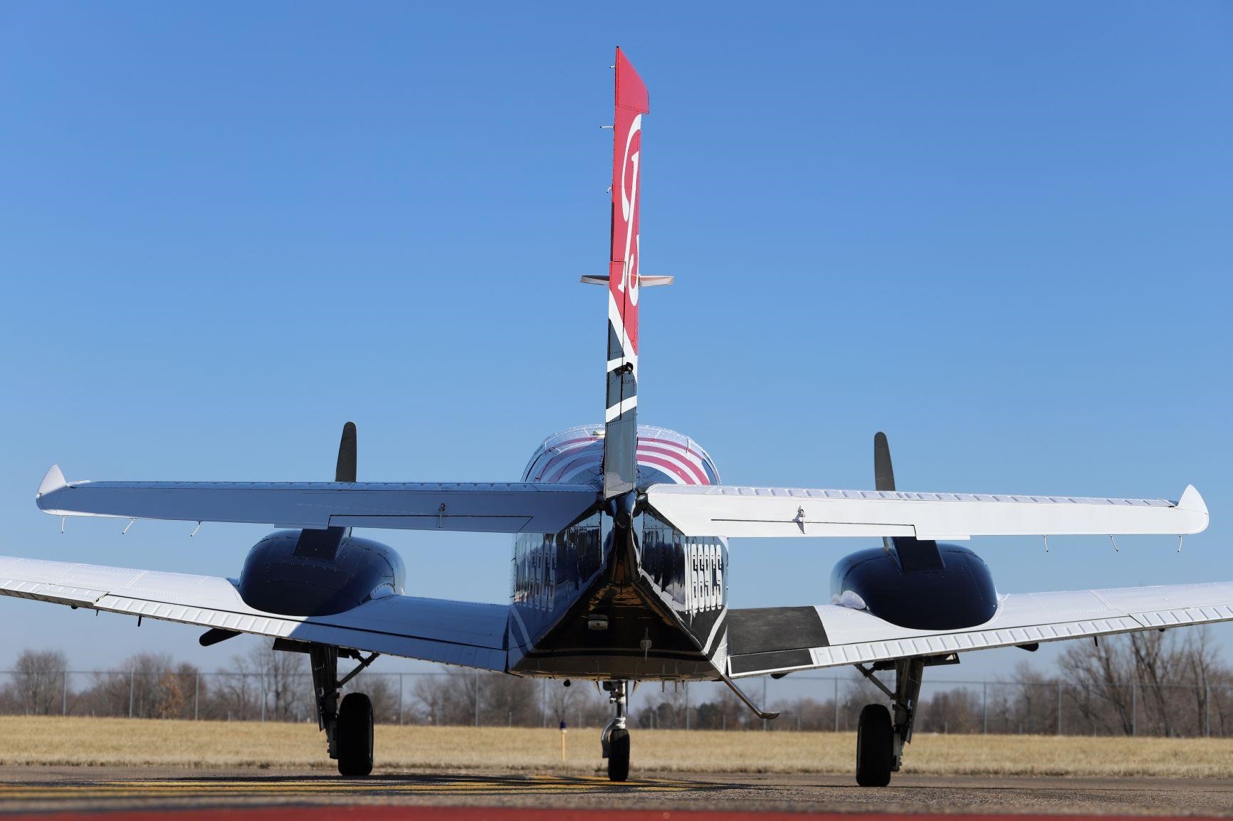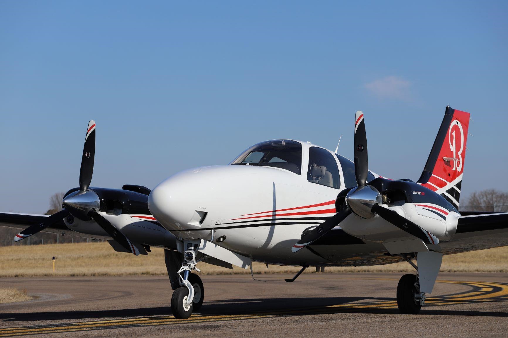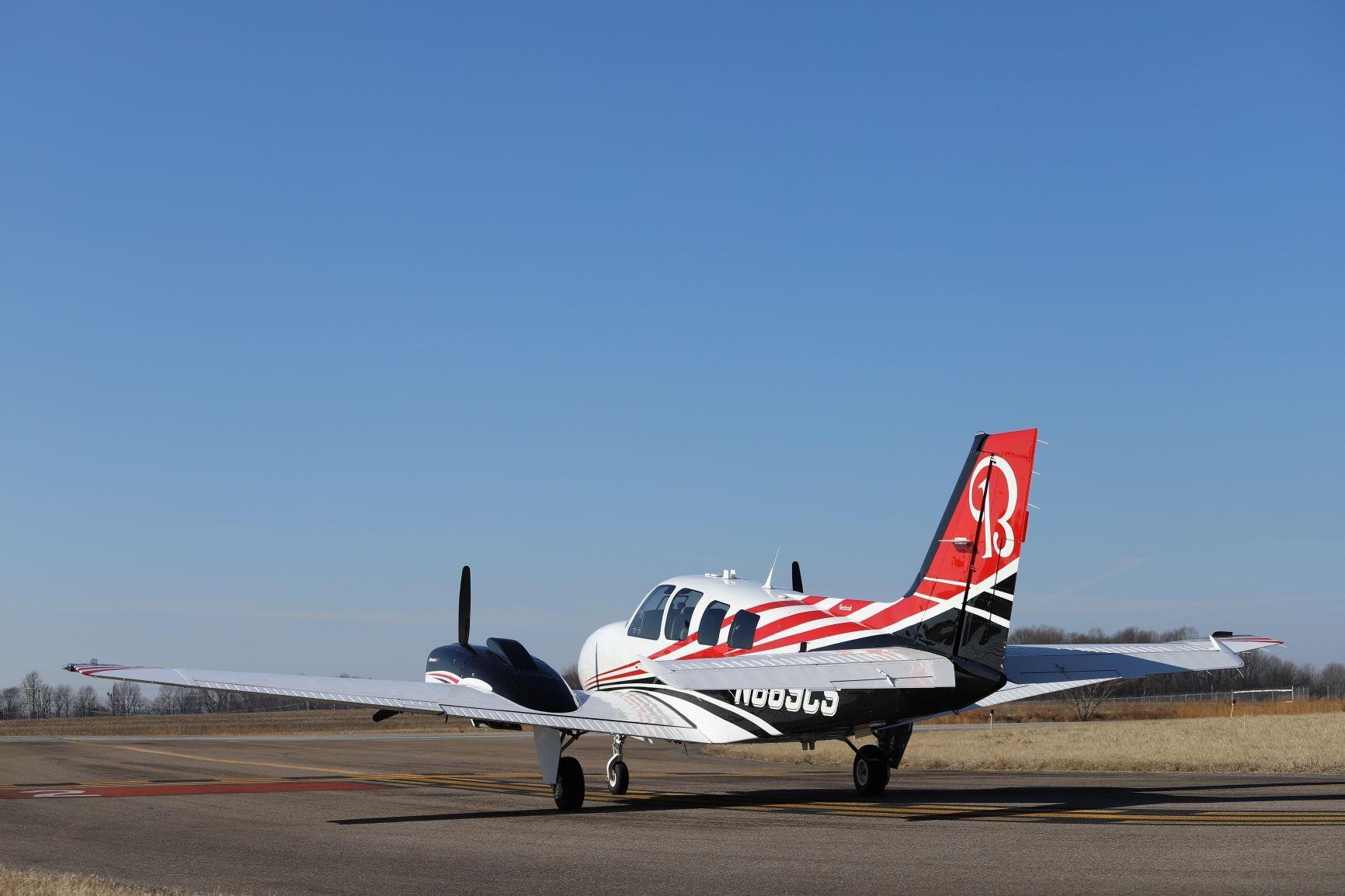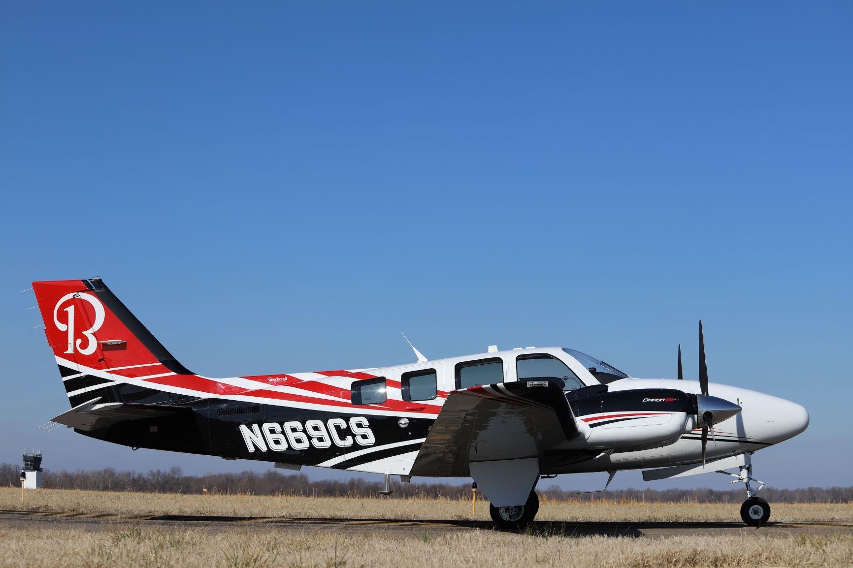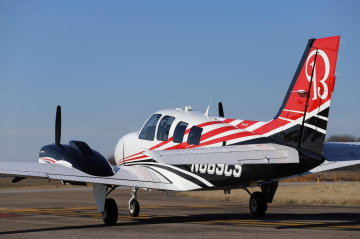 Exterior: Optional Beechcraft DEMO Paint Scheme. Overall Desoto Matterhorn White with Desoto black and Desoto Toreador Red accents |
