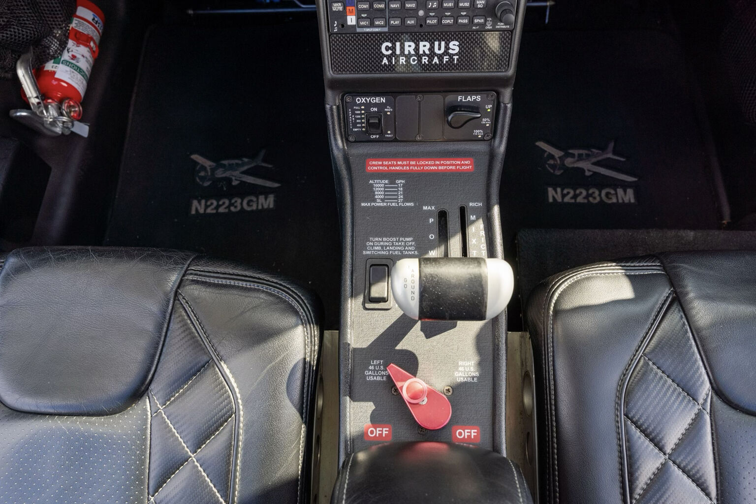 Cirrus Perspective by Garmin Avionics Suite Dual WAAS-enabled GPS Dual AHARS Dual Air Data Computers Garmin SVT - Synthetic Vision Technology Garmin 12-inch LCD displays Garmin ChartView (Powered by Jeppesen) Engine & Fuel Monitoring Garmin SafeTaxi Perspective Enhanced Vision System (EVS) Garmin GFC-700 Digital Autopilot Yaw Damper Flight Director Garmin ESP - Electronic Stability Protection Garmin GMA-350 All-Digital Audio Panel Garmin GTS33 ES ADS-B Out Transponder Garmin Active Traffic System Enhanced Ground Proximity Warning System (TAWS-B) XM Weather Datalink w/XM Audio Includes 3-Month Free Trial Subscription Digital 4-in-1 Standby Instrument |