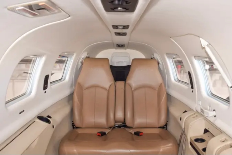 | Premium Dune (Tan) Leather Interior with Coordinated Side Panels, Carpet, and Headliner. Fold-out Executive Table, Individual Reading Lights, Accent Lights, Phone/Mic/Aux Music Input Jacks. Pilot/Co-Pilot Sheepskin Covers. | |||||