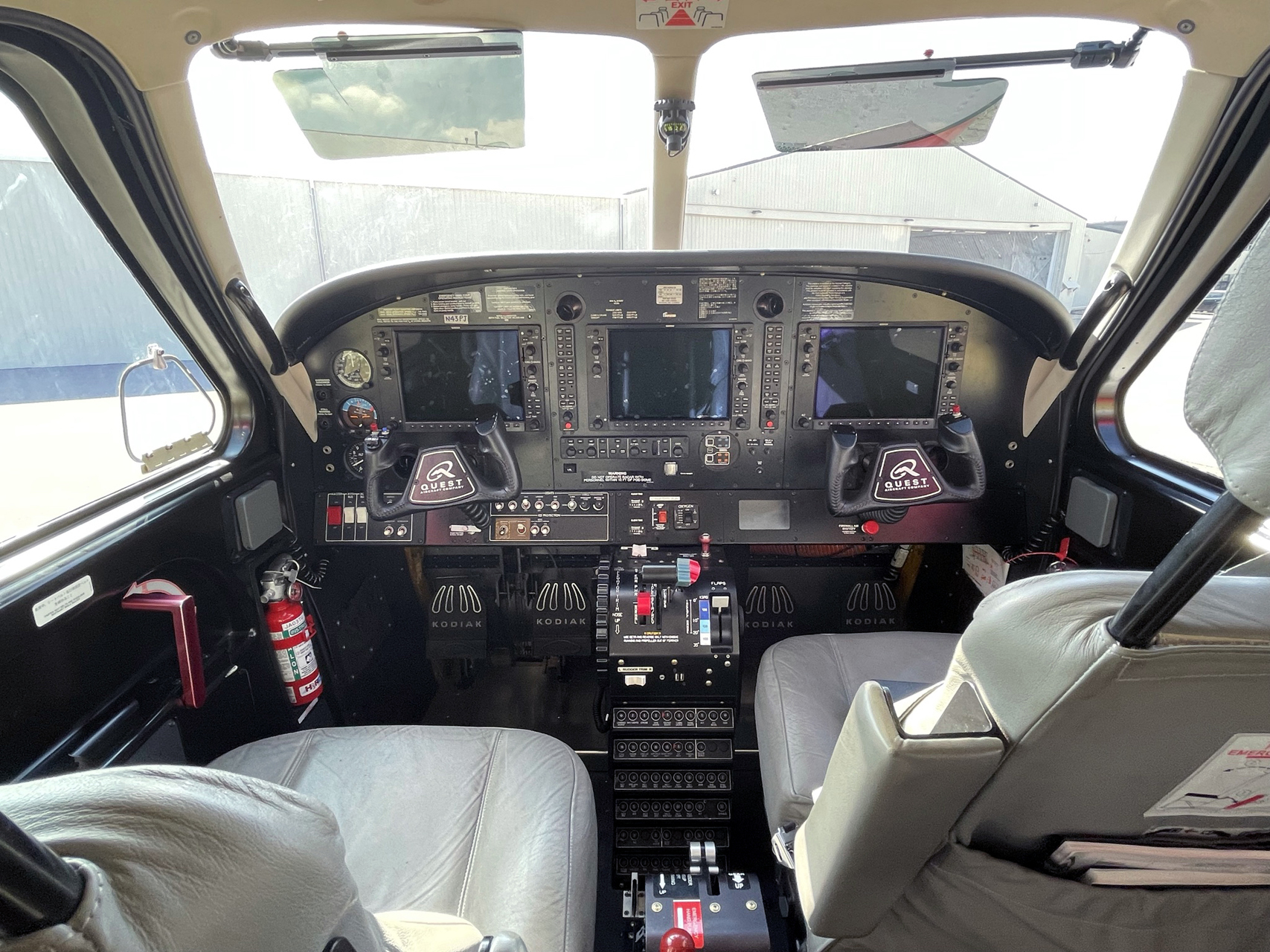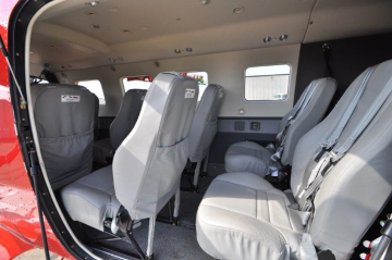 The aircraft is equipped with the Timberline seating package in grey leather, with space for 9 passengers.  Cup holders, headset plugins, and USB charging ports at each place.   |