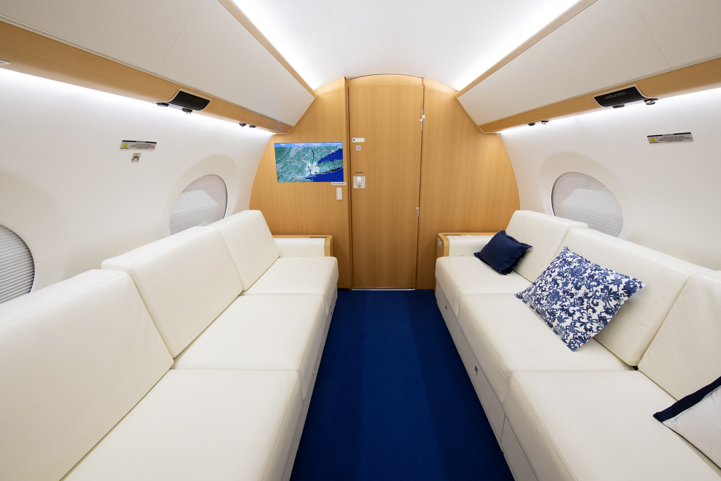 Planeview II ADS-B Out V2 CPDLC - FANS 1/A+ Enhanced Navigation (Incl. WAAS, LPV, FANS 1/A+) SATCOM Direct â Datalink Service Provider (ASC 003A) GoGo Biz Swift Broadband Internet âPay-as-you-goâ Gulfstream BBML WIFI Data Receiver System NextGen Flight Management Systems (FMS) Traffic Collision Avoidance System (TCAS 7.1) Inertial Reference System (IRS) Emergency Vision Assurance System (EVAS) Runway Awareness Advisory System â RAAS (ASC 005B) Lightning Sensor System (ASC 006B) XM Weather (ASC 008A) Predictive Windshear (ASC 007A) ENTERTAINMENT 2 Blu-Ray DVD Players 1 Dual Slot Blu-Ray/DVD/CD 1 X 17” HD LCD Monitor in the Crew Compartment 1 X 26” HD LCD Monitor in the Forward Right-Hand Cabin Bulkhead 1 X 26” HD LCD Monitor on an Electric Lift in the Credenza 1 X 26” HD LCD Monitor in the Right-Hand Aft Cabin Bulkhead 1 X 12.1” HD LCD Personal Monitor in the Inboard Armrest of each Single Seat in the Passenger Cabin (14 seats) 16 115V/60Hz AC Outlets Wireless LAN System Securaplane with 3 External Cameras |