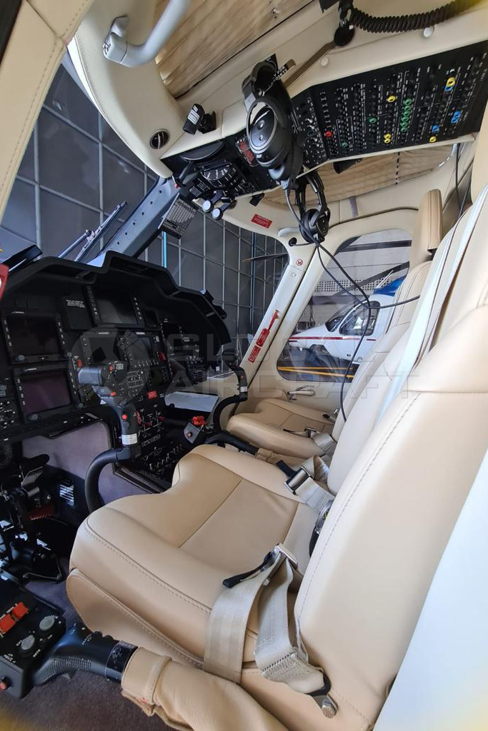 Baggage compartment extension (2.3 m) High-intensity white strobe lights on horizontal stabilizer Electrical operated passengers step LH Single central drawer Cabin Double Layer Tinted Windows Upper Cockpit Tinted Windows Airframe hourmeter Engine compartment fire extinguishers (Qty 2) Fuel cap with key-lock Pulsed chip detectors (in lieu of quick disconnecting chip detectors) Reinforced windshields (pilot and co-pilot) Retractable/ rotating landing light (nose mounted) Windshield wipers (pilot and co-pilot) with wiper switch on cyclic grips Primer finished cabin walls |