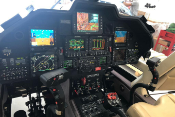 Pilot Flight/ NAV EFIS (2 displays) w/ embedded FMS, Slip indicator & Remote Bug Panel (RBP) Copilot Flight/ NAV EFIS (2 displays) w/ embedded FMS, Slip indicator & Remote Bug Panel (RBP) Reversionary Control Panel (RCP) EFIS Pilot/ Co-pilot NAV Sync Switch (FMS data) Electronic Standby Instrument system (ESIS) Second Radio Management System (RMS) RTU-4210 Collins Second VHF/AM VHF-40000E Collins VOR/ILS/ADF NAV-4000 Collins DME DME-4000 Collins Radio Altimeter ALT-4000 Collins Second Attitude Heading Reference System (AHRS) Second Air Data Unit (ADU) Pilot & Copilot GPS/SBAS Chelton interfaced to EFTS/FMS Digital Audio Control System (DACS) NAT additional cockpit panel 4-axis Dual Duplex Digital AFCS with integrated Flight Director 8.4" Cockpit Central Display Second Electronic Clock Second Magnetic Compass Indicator ELT C406-N HM Artex ( with Navigation Interface Module embedded) Digital Map Euronav V Euroavionics interfaced to FMS (presented on 8.4" display) Traffic Advisory System TAS-620 Avydine (presented on EFIS) Weather radar RDR 2000 Bendix/King (presented on EFIS) Dual controls Rotor brake 213 USgal crash-resistant fuel system (in lieu of 152 USG) 24VDC 33Ah nickel-cadmium battery (20 cells in lieu of 19 cells) Air Conditioning ECS (Environment Control System) |