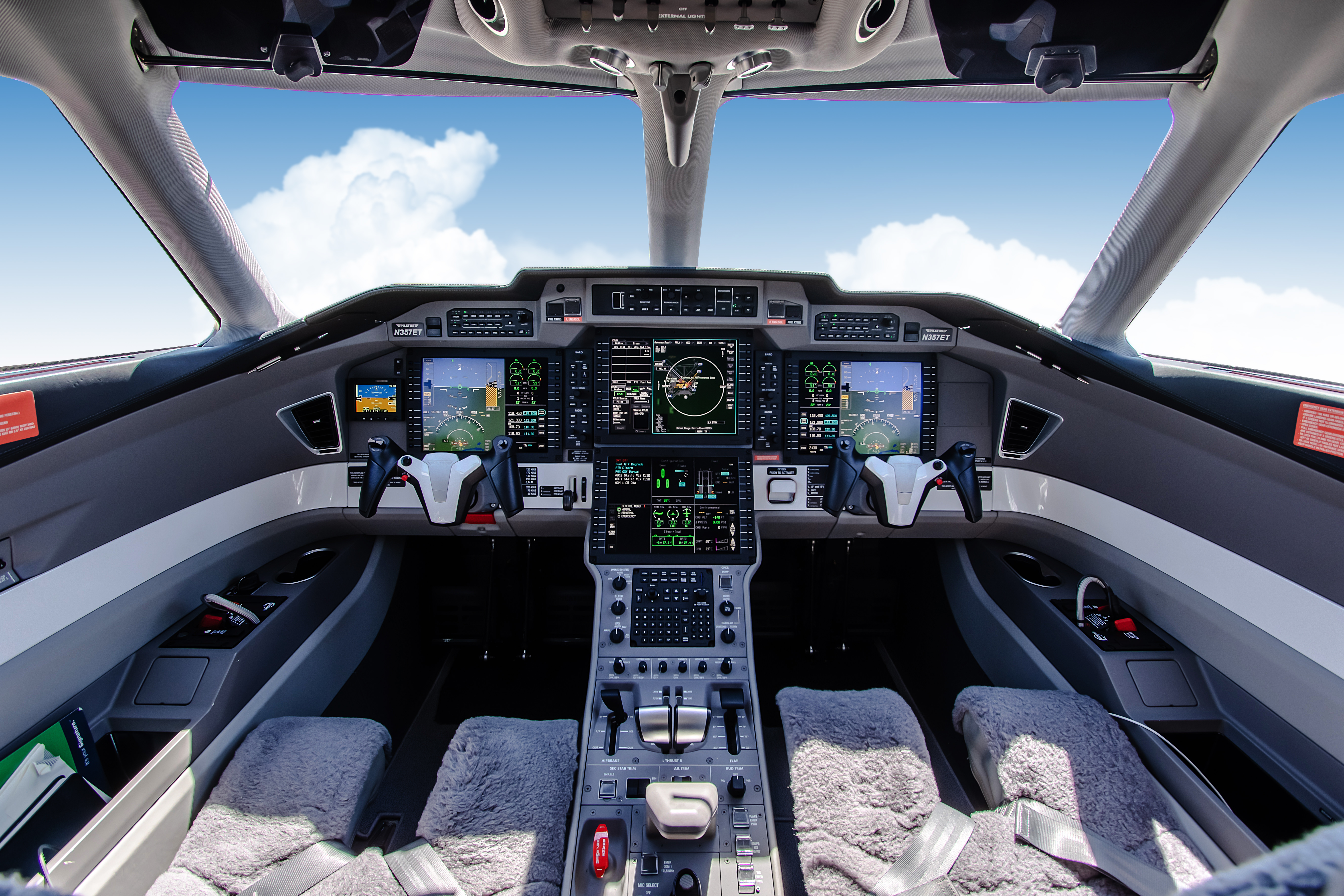 Honeywell Advanced Cockpit Environment (ACE™) Dual Flat Panel Primary Flight Displays Dual Multifunction Displays SmartView Synthetic Vision Dual Audio/Marker Panels Three-Axis Auto-Pilot with Dual Yaw Damper Flight Guidance Panel Multi-function Controller with Alphanumeric Keyboard and Joystick Cursor Control Device Dual Mode S Transponder with ADS-B Out Functionality Dual Multi-Mode Digital Radios Dual Attitude Reference Systems including IRS and AHRS DME Radar Altimeter CPDLC Capability Enhanced Ground Proximity Warning System TCAS II Auto-Throttle System Dual Pitot-Static Systems Dual AOA Sensors RDR 2100 Weather Radar Electronic Standby Instrument System ELT 406 MHz with remote switch and NAV interface |