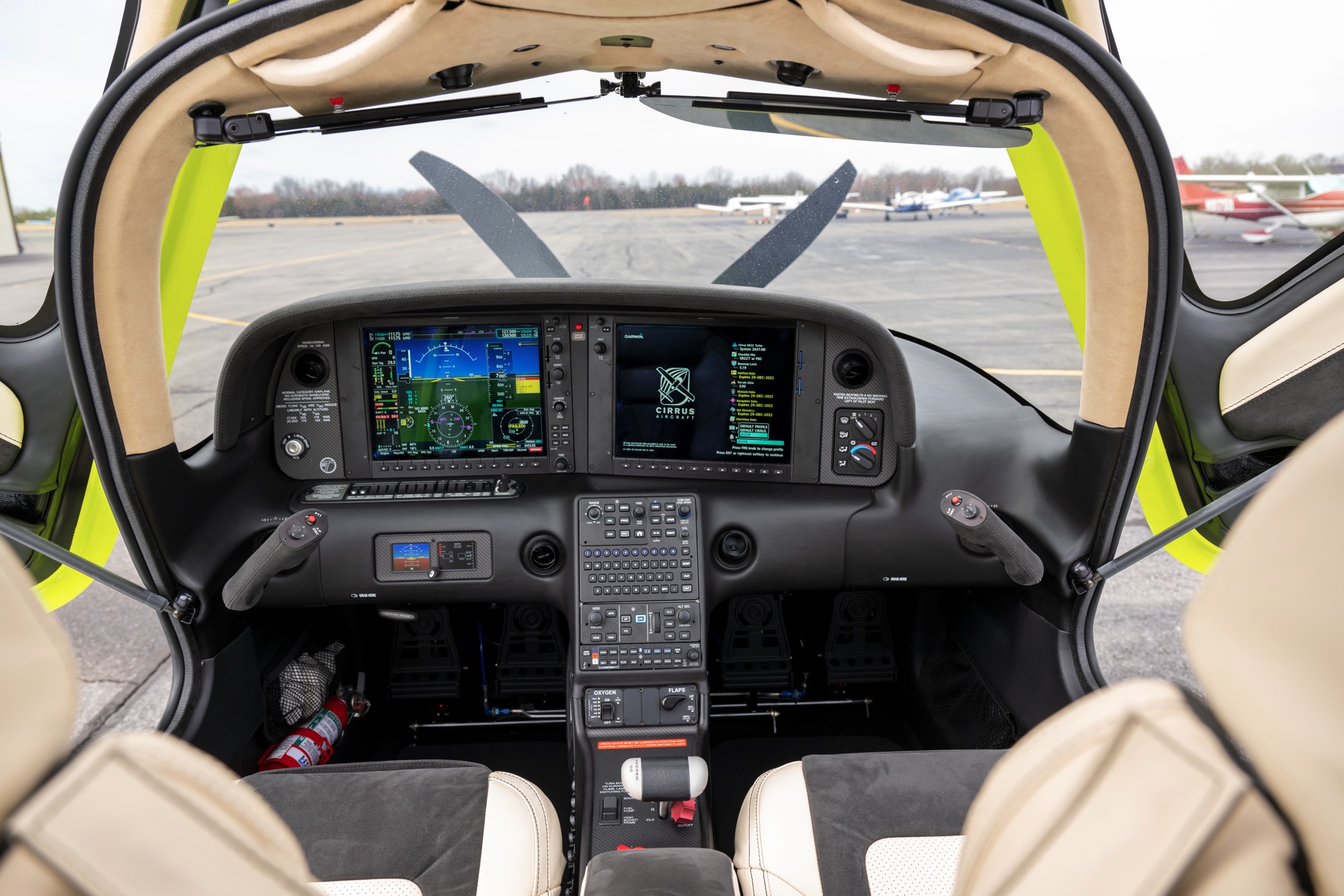 TKS Known Ice Protection System (FIKI) Cirrus Airframe Parachute System (CAPS) Factory Installed Air Conditioning AmSafe Crew Seat Airbag Restraints Precise Flight 77-Cubic Foot Fixed Oxygen System LED Exterior Lighting Featuring Cirrus Spectra Wing Tip Lights Surface Illumination Lights (Ice Lights) Keyless Entry & Ambient Convenience Lighting Beringer Brakes Tubeless Tires Tanis Engine Pre Heater Advanced Wheel Fairings UV Tinted Windows Leading Edge Protectant Black Spinner 406 MHz ELT Rosen Sun Visors Four USB Power Ports 60/40 Flex Seating |