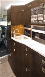Ten (10) passenger interior features a (4) four-place club arrangement in the forward cabin, followed by a (4) four-place conference group with an oversized table opposite a (2) two place clube. Forward Cabin: 4-place club with fold tables Aft Cabin: 4-place conference group opposite 2-place club Forward Galley Aft Lav |