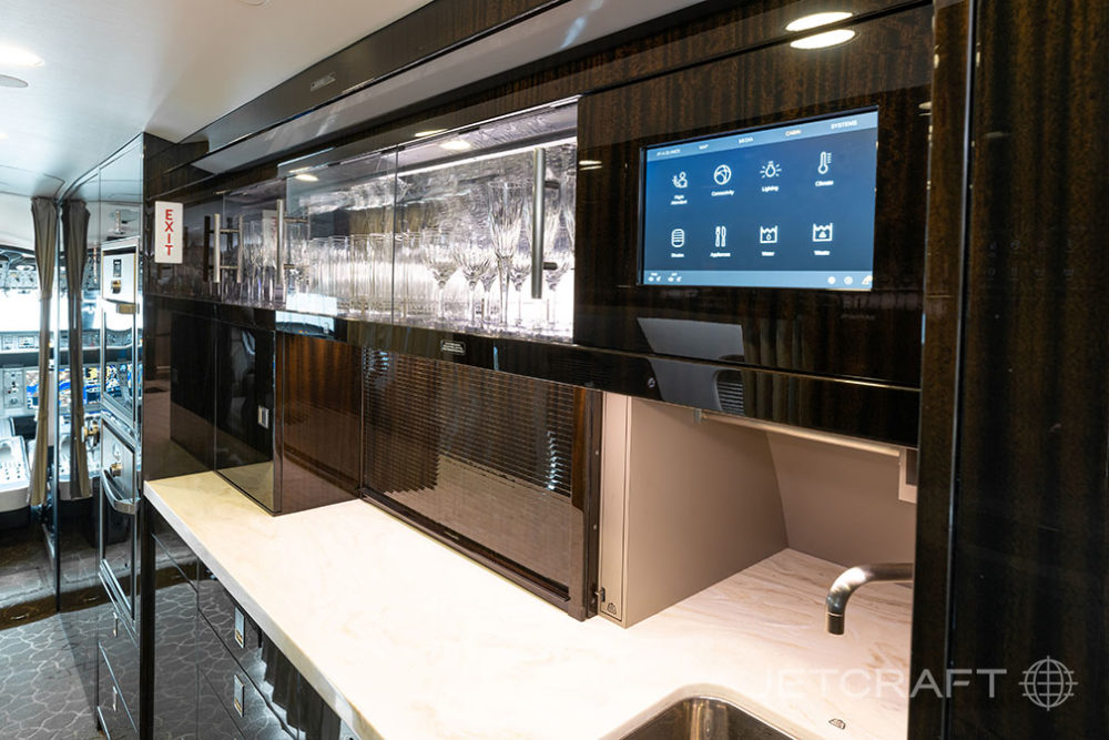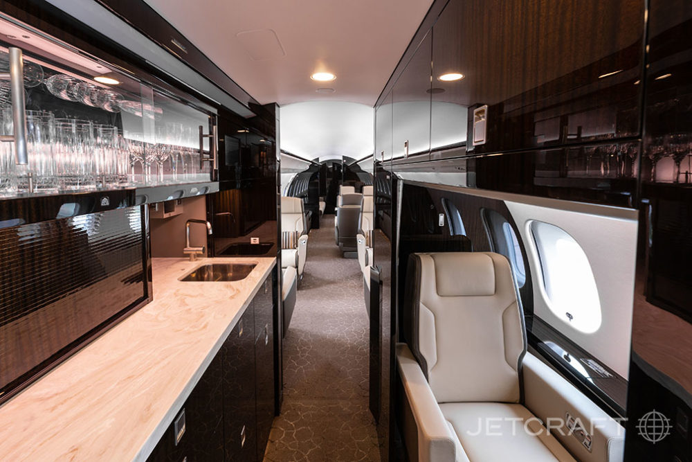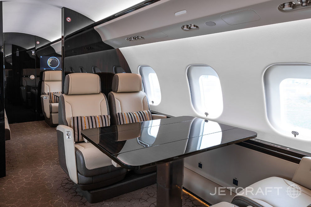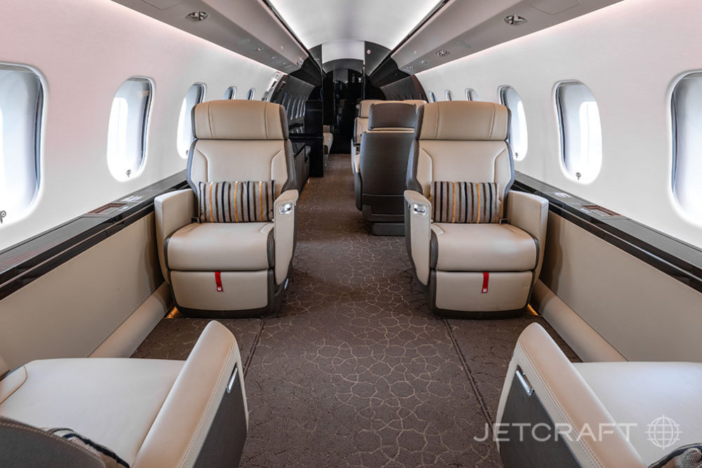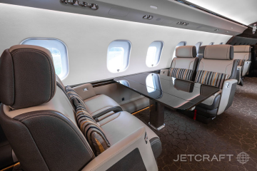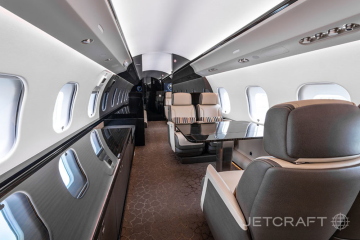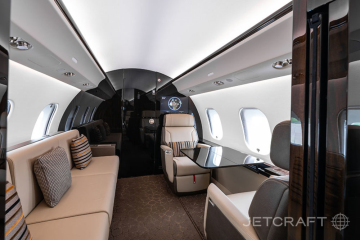 Number of Passengers - Thirteen (13) Galley Location - Fwd Forward Cabin Configuration - Four (4) Place Executive Club with Pullout Tables Mid Cabin Configuration - Four (4) Place Conference Grouping Opposite a Credenza Aft Cabin Configuration - Two (2) Place Executive Club with Pullout Table Opposite a Three (3) Place Divan Lavatory Location(s) - Fwd Crew Lavatory and Aft Executive Lavatory Crew Rest - Yes Jumpseat - Yes Galley Equipment - Microwave/Convection Oven, Steam/Convection Oven, Air Chiller, Chilled Drawer, Ice Drawer, Wine Storage, China Storage, Stainless Steel Sink, Dirty Dish Bin Drawer, Sealed Waste Drawer, Paper Towel Dispenser, HD Touchscreen, Two (2) Single Electrical Outlets. Other Notable Feature(s) - Club Seats are Patented Bombardier Executive Single Seats Capable of Berthing and Reclining, Tracking and Swiveling with Leg Rest, and Inboard Armrest Storage. Two (2) Stowable Tablet Holders with Power Provisions Located in the Cockpit |