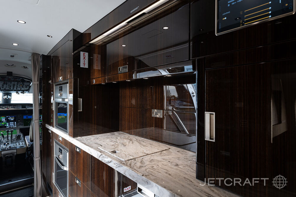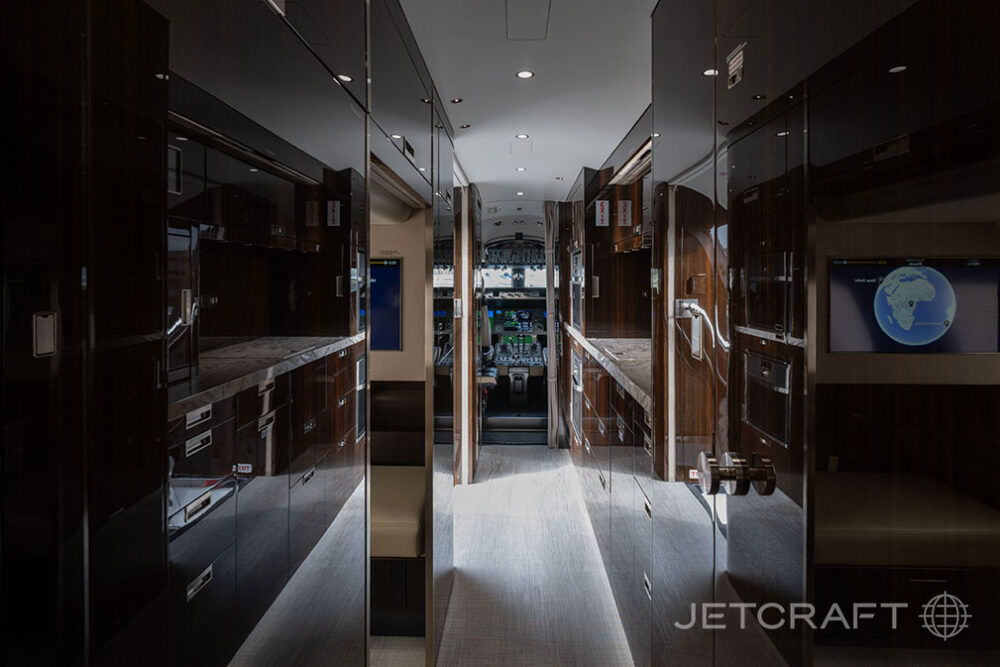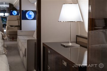 Number of Passengers Fifteen (15) Galley Location Forward Forward Cabin Configuration Four (4) Place Executive Club with pull-out tables Forward Mid Cabin Configuration Six (6) Place Angled Conference Grouping Aft Mid Cabin Configuration Two (2) Place Club opposite a Three (3) Place Divan Aft Cabin Configuration Single (1) Fixed Bed opposite a Credenza Lavatory Location(s) Forward & Aft Crew Rest Yes Jumpseat Yes |
