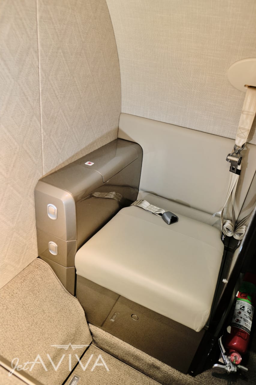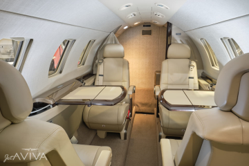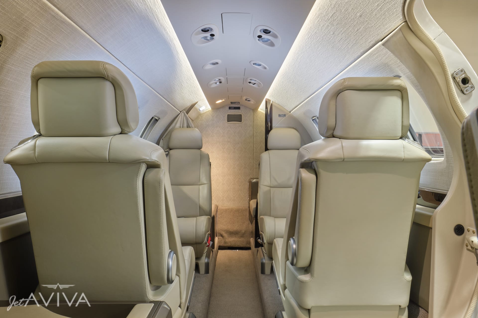 Cabin seating for five (5) in a center-club configuration with RH forward side-facing seat Left-hand aft belted flushing toilet for sixth cabin passenger Dual Executive Tables |