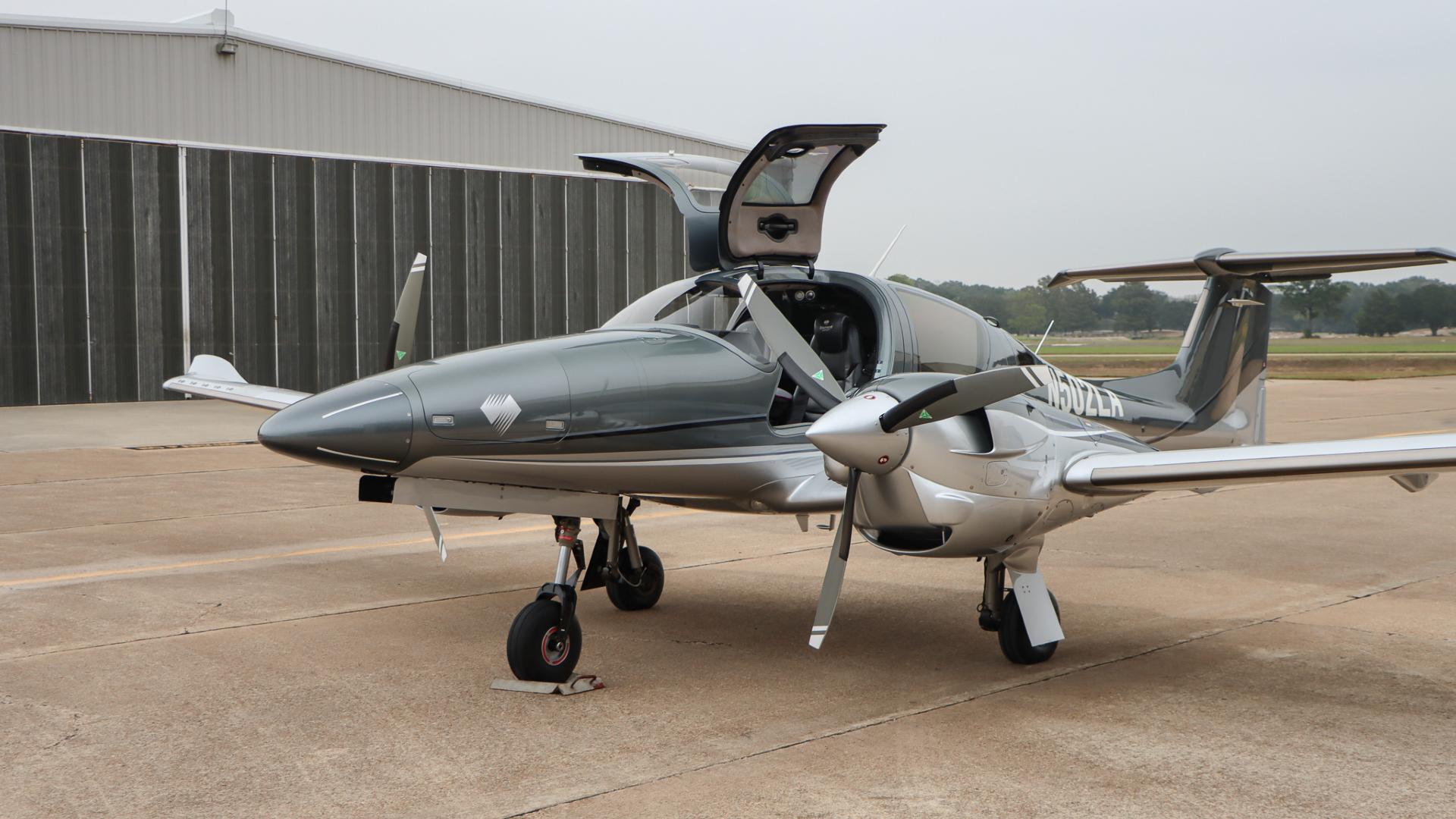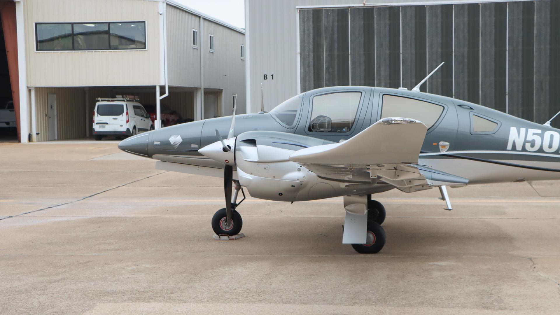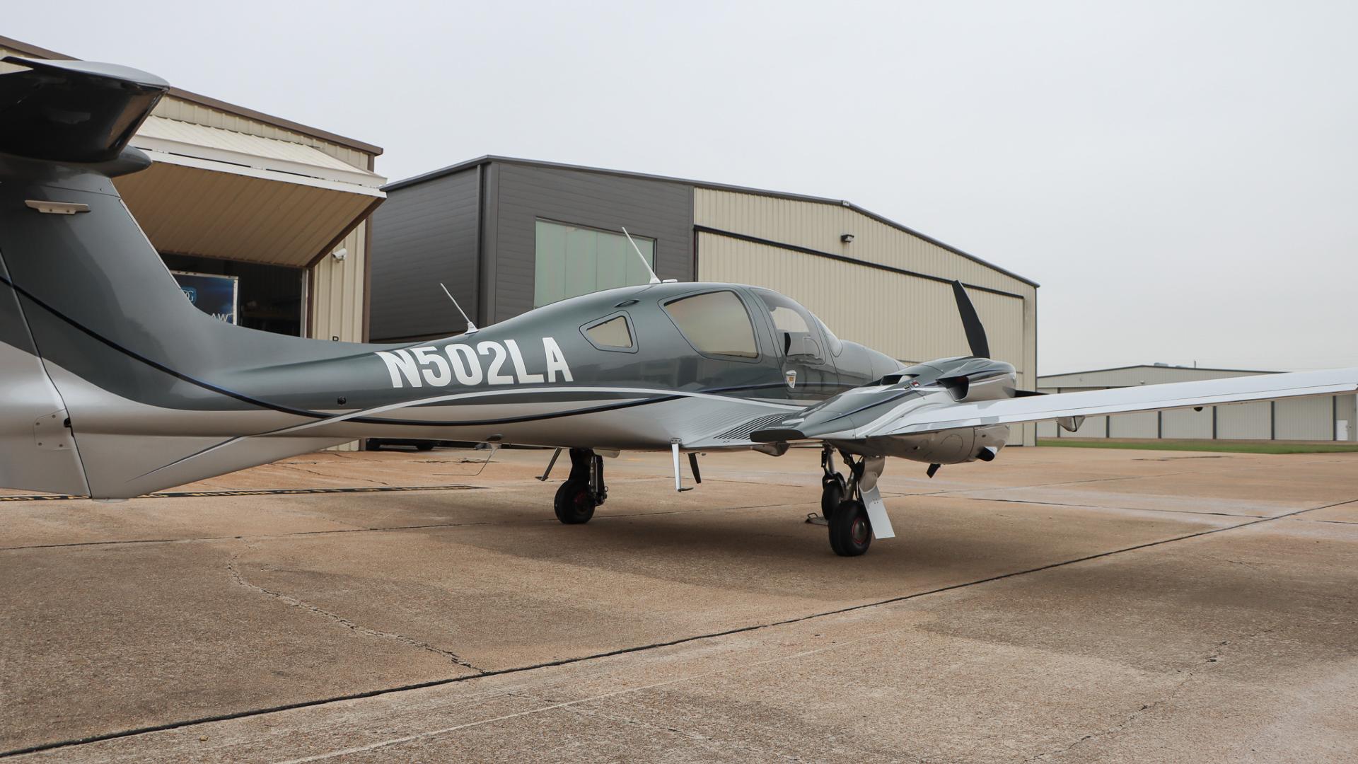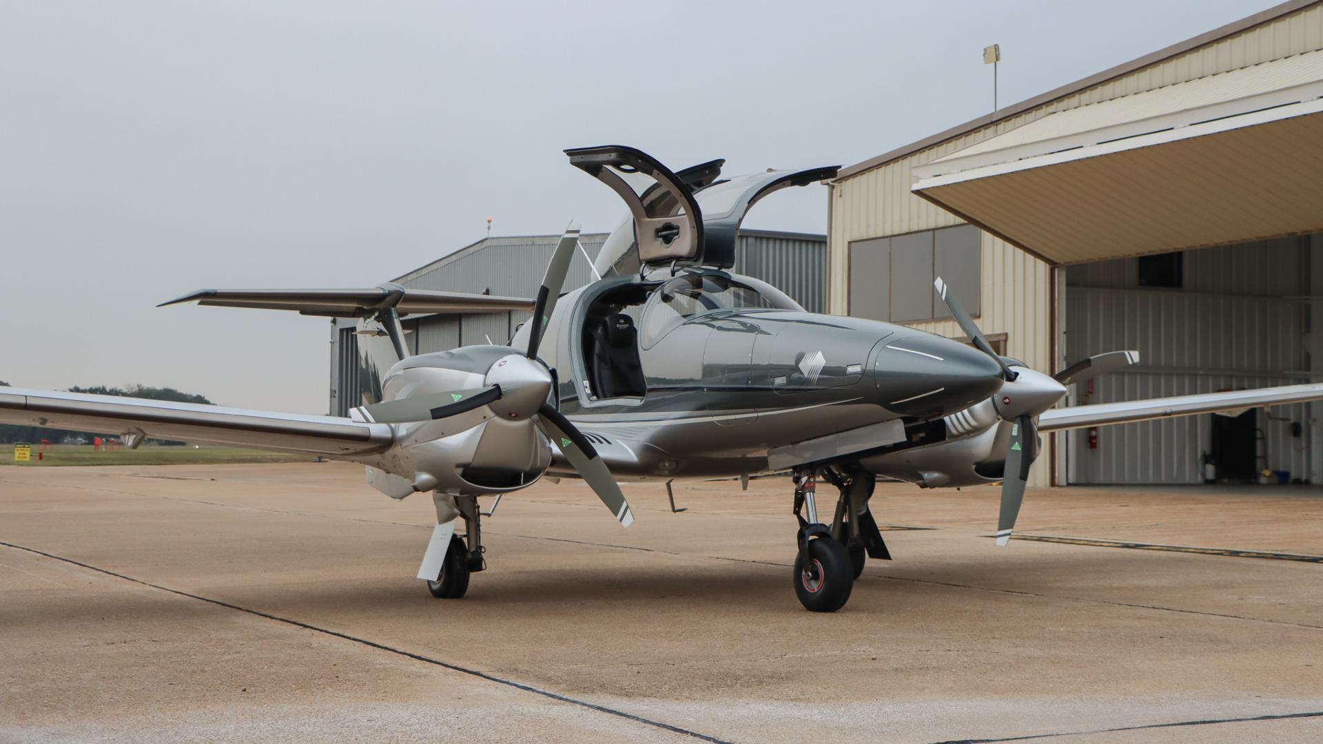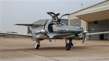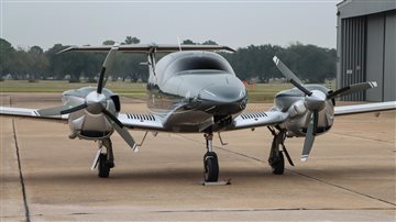 | This Diamond DA62 features the striking Diamond Premium Anthracite Metallic base color, a deep, modern shade that gives the aircraft a commanding and upscale presence. The metallic finish adds dimension and highlights the DA62’s sleek composite curves under any lighting. Complementing the bold Anthracite, refined Silver accents run cleanly along the airframe, creating a balanced, elegant contrast that enhances the aircraft’s overall sophistication. The combination of these two premium colors results in a distinctive, contemporary look that sets this DA62 apart on any ramp—both stylish and timeless. | |