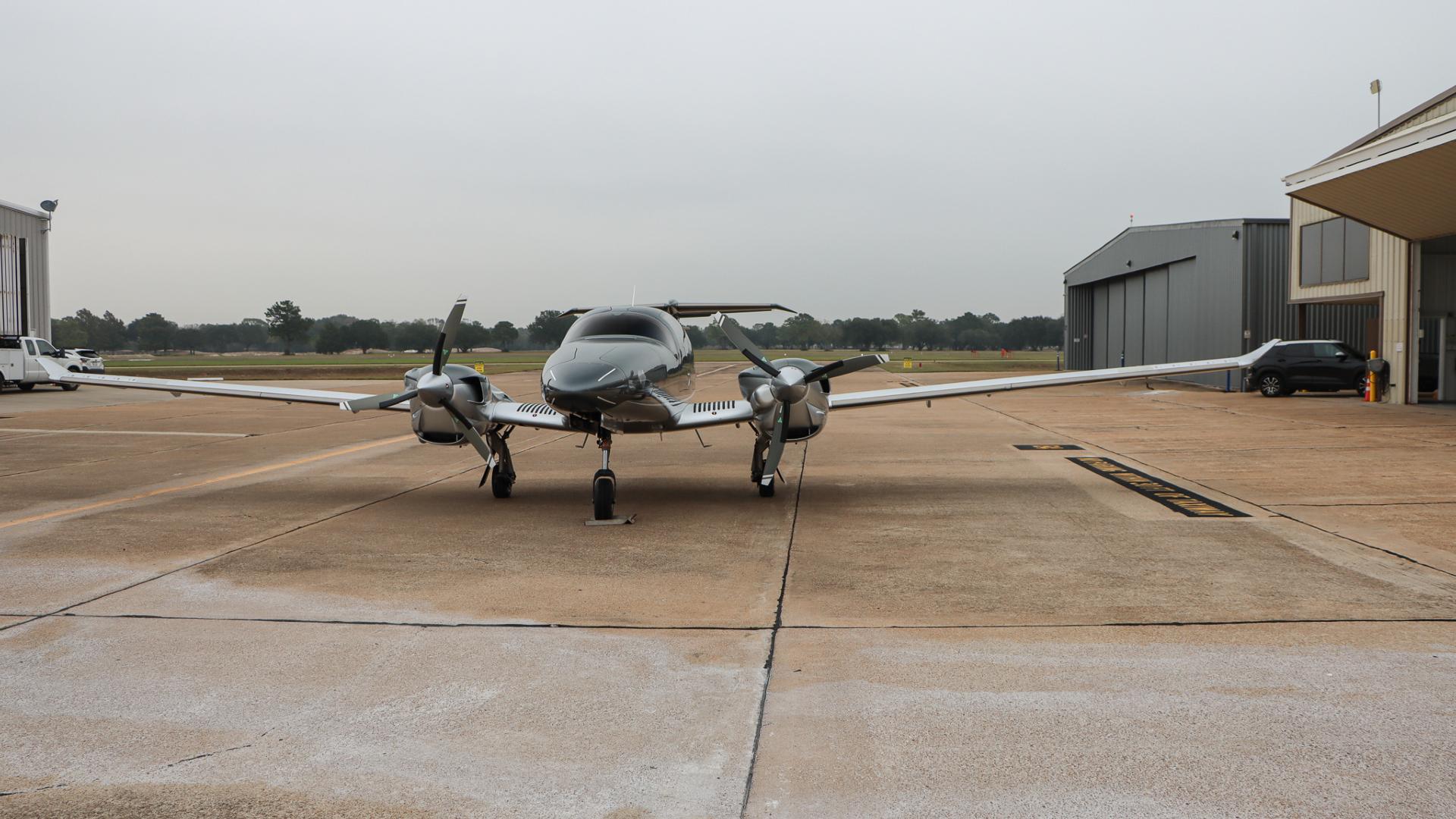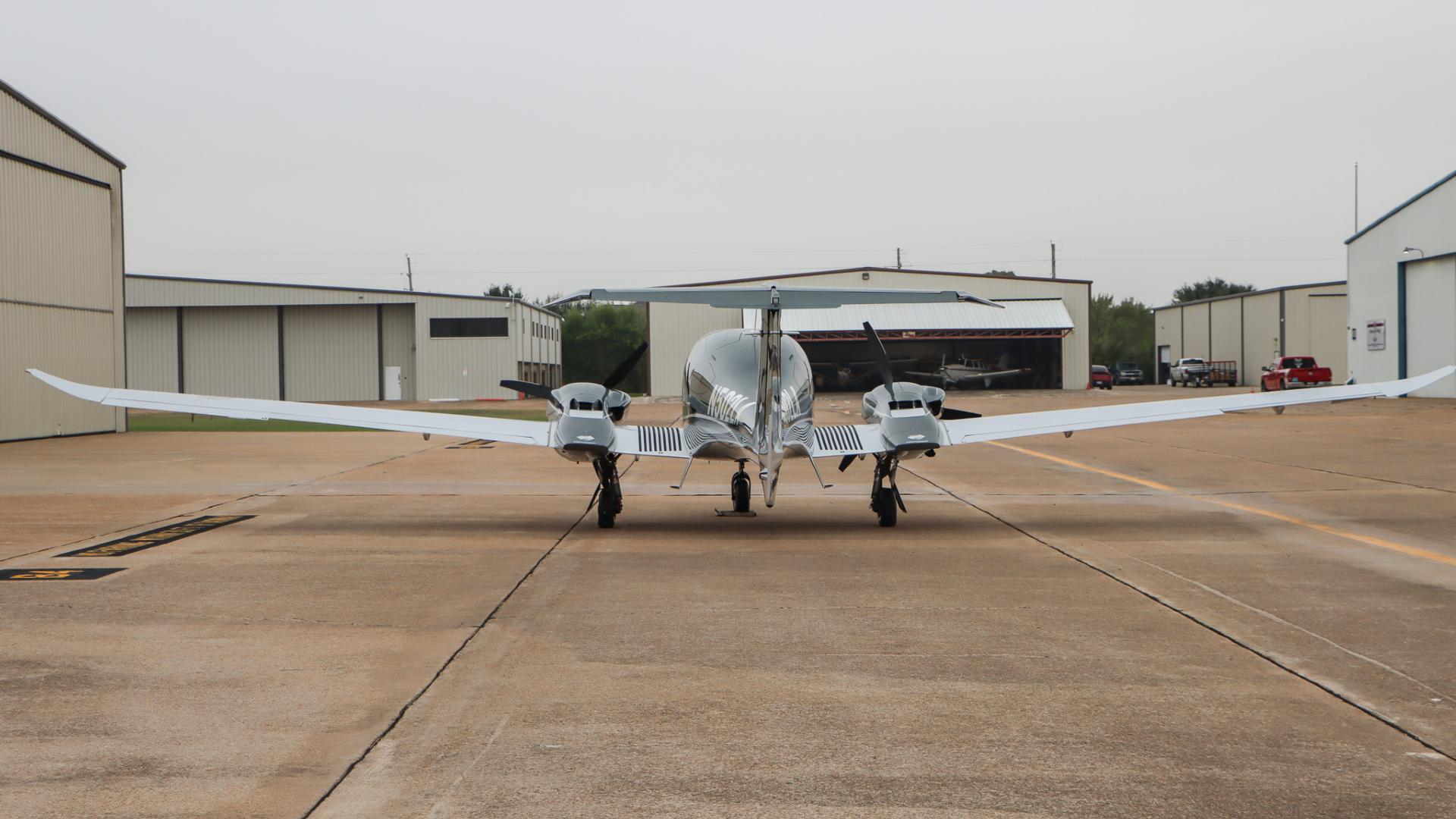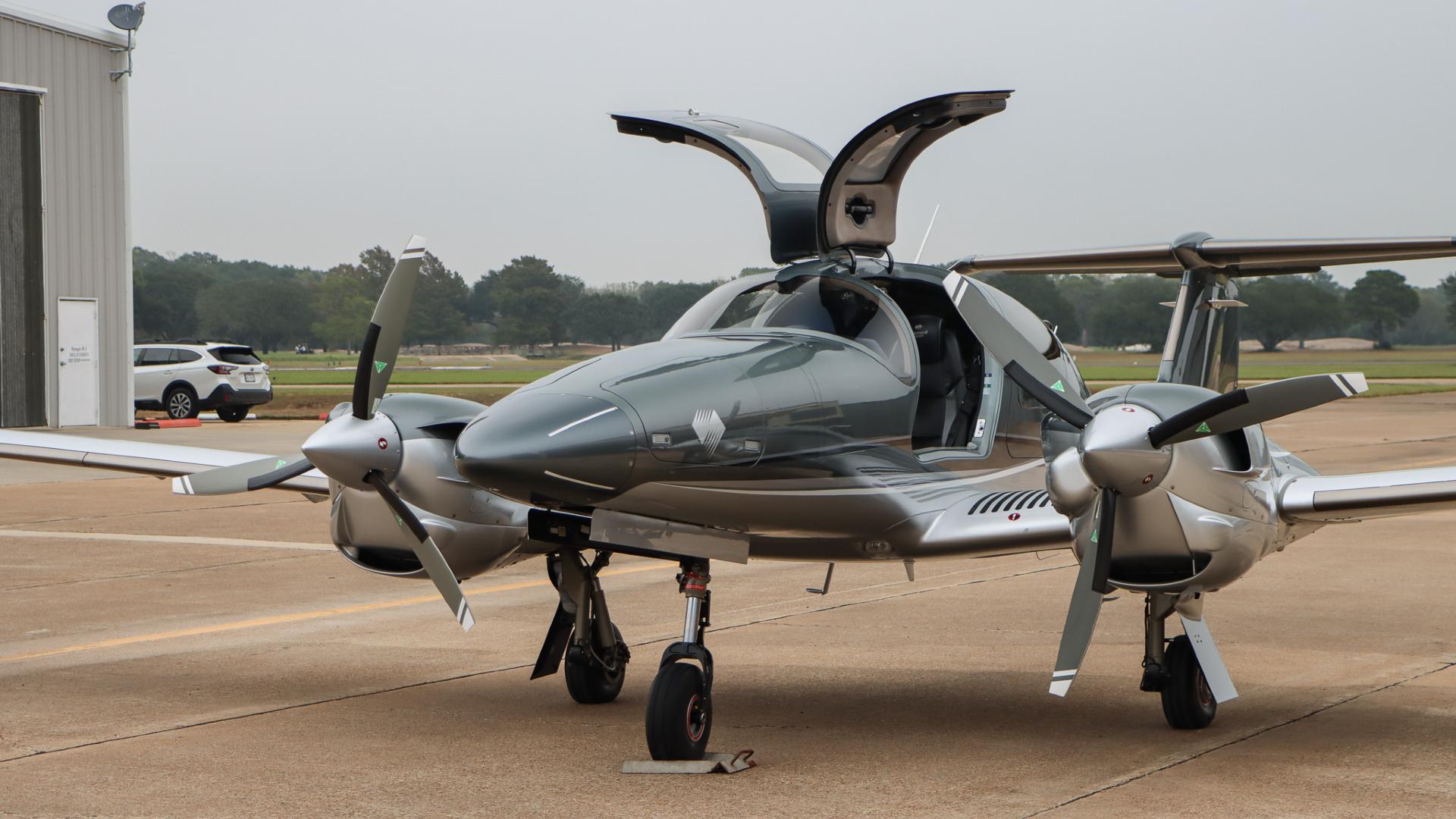 | This Diamond DA62 features the striking Diamond Premium Anthracite Metallic base color, a deep, modern shade that gives the aircraft a commanding and upscale presence. The metallic finish adds dimension and highlights the DA62’s sleek composite curves under any lighting. Complementing the bold Anthracite, refined Silver accents run cleanly along the airframe, creating a balanced, elegant contrast that enhances the aircraft’s overall sophistication. The combination of these two premium colors results in a distinctive, contemporary look that sets this DA62 apart on any ramp—both stylish and timeless. | |