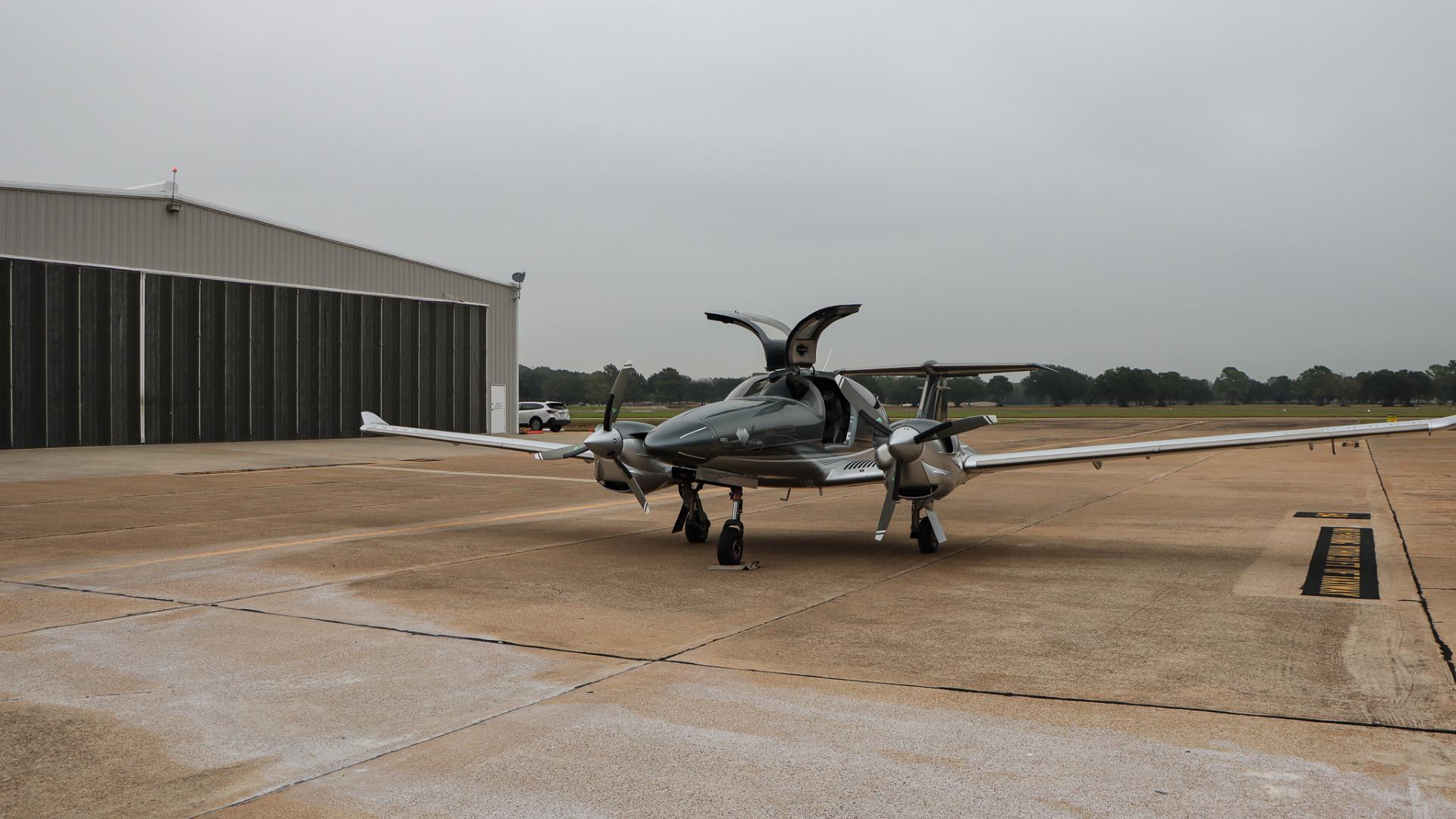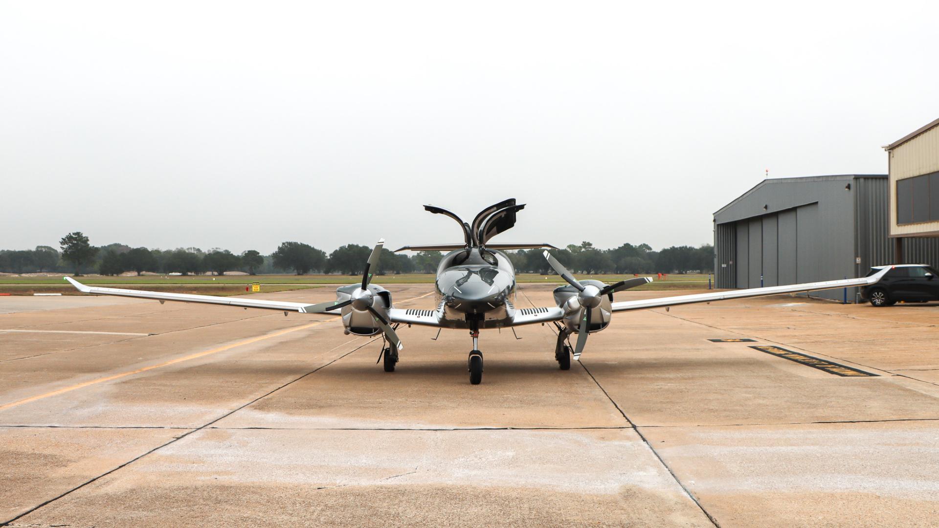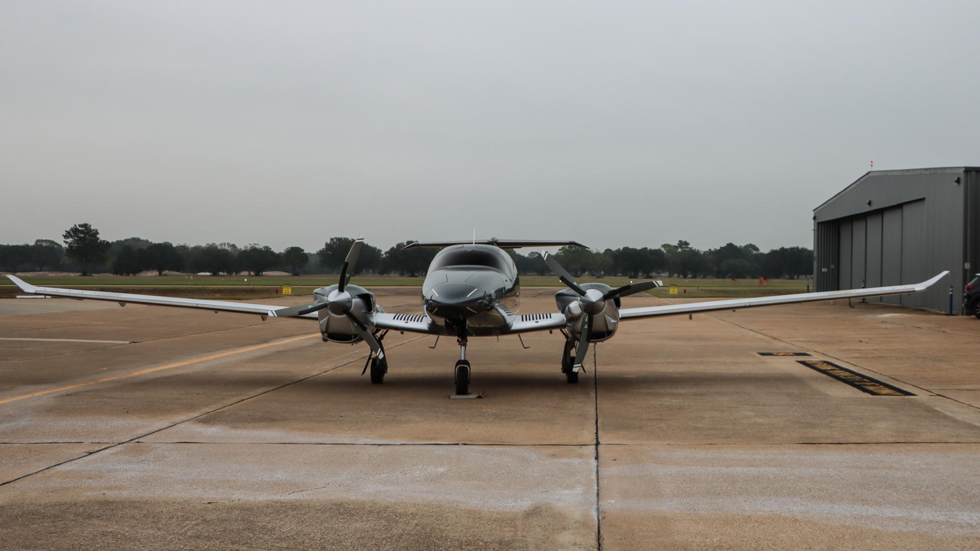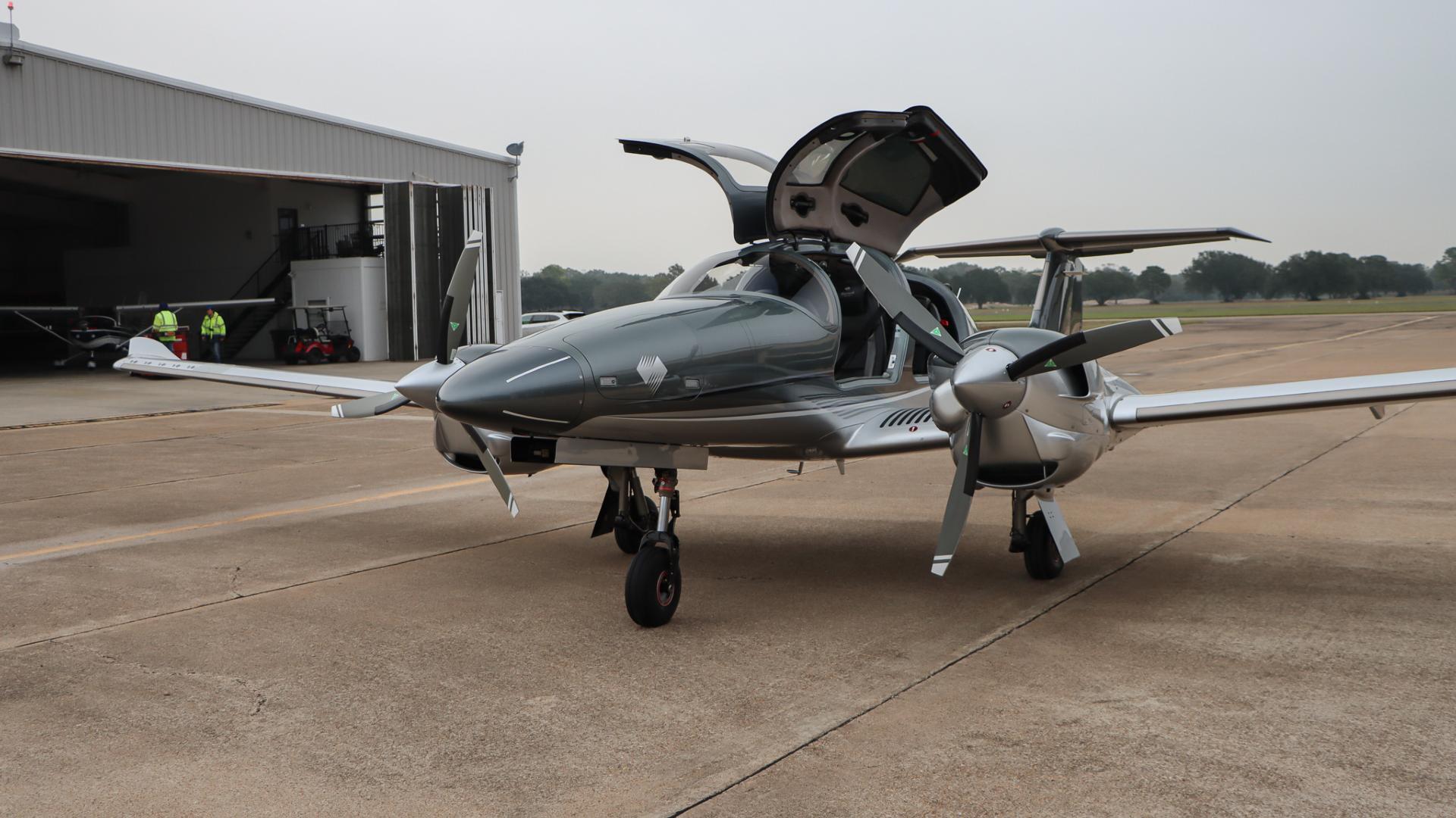 | This Diamond DA62 features the striking Diamond Premium Anthracite Metallic base color, a deep, modern shade that gives the aircraft a commanding and upscale presence. The metallic finish adds dimension and highlights the DA62’s sleek composite curves under any lighting. Complementing the bold Anthracite, refined Silver accents run cleanly along the airframe, creating a balanced, elegant contrast that enhances the aircraft’s overall sophistication. The combination of these two premium colors results in a distinctive, contemporary look that sets this DA62 apart on any ramp—both stylish and timeless. | |