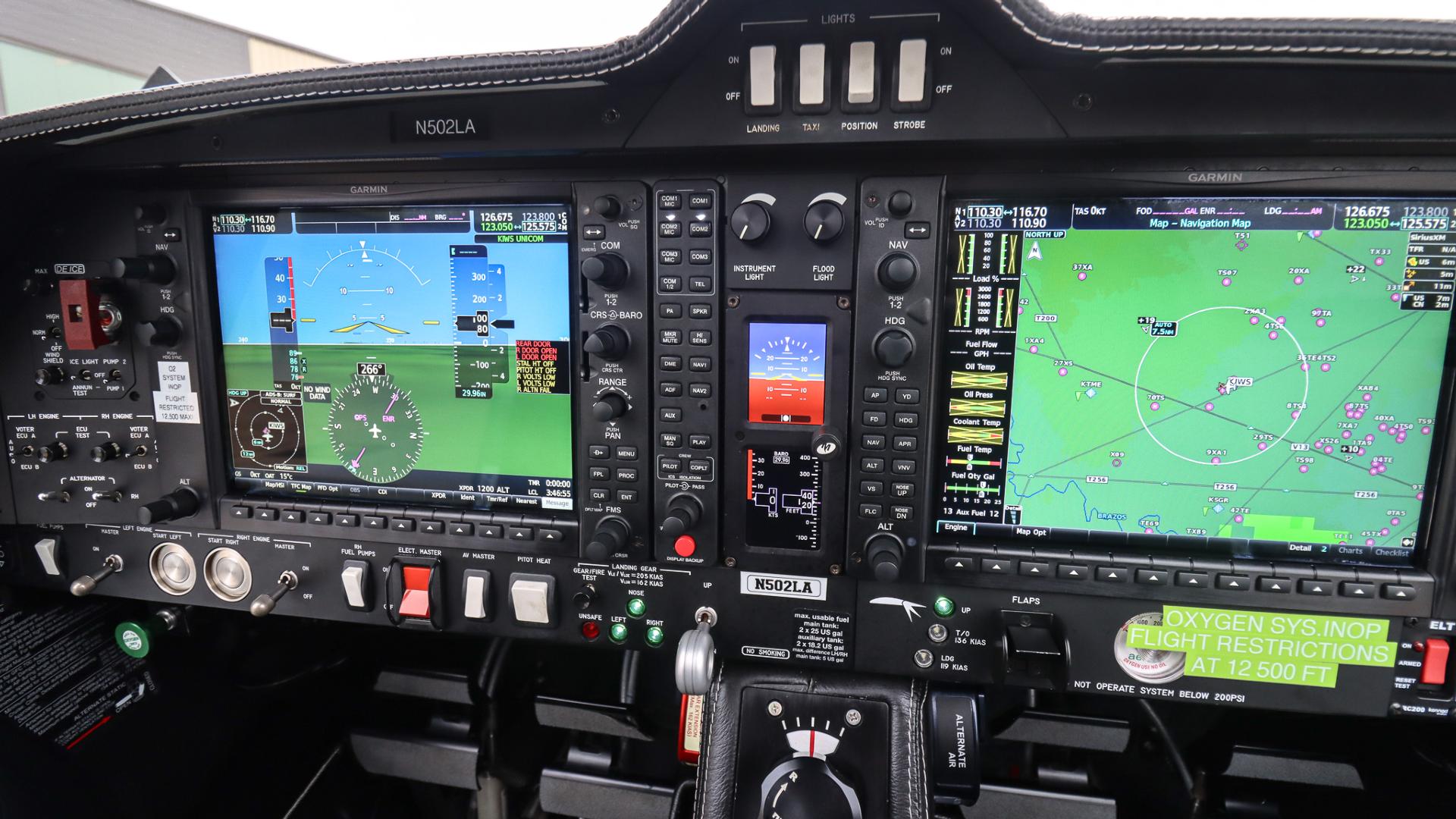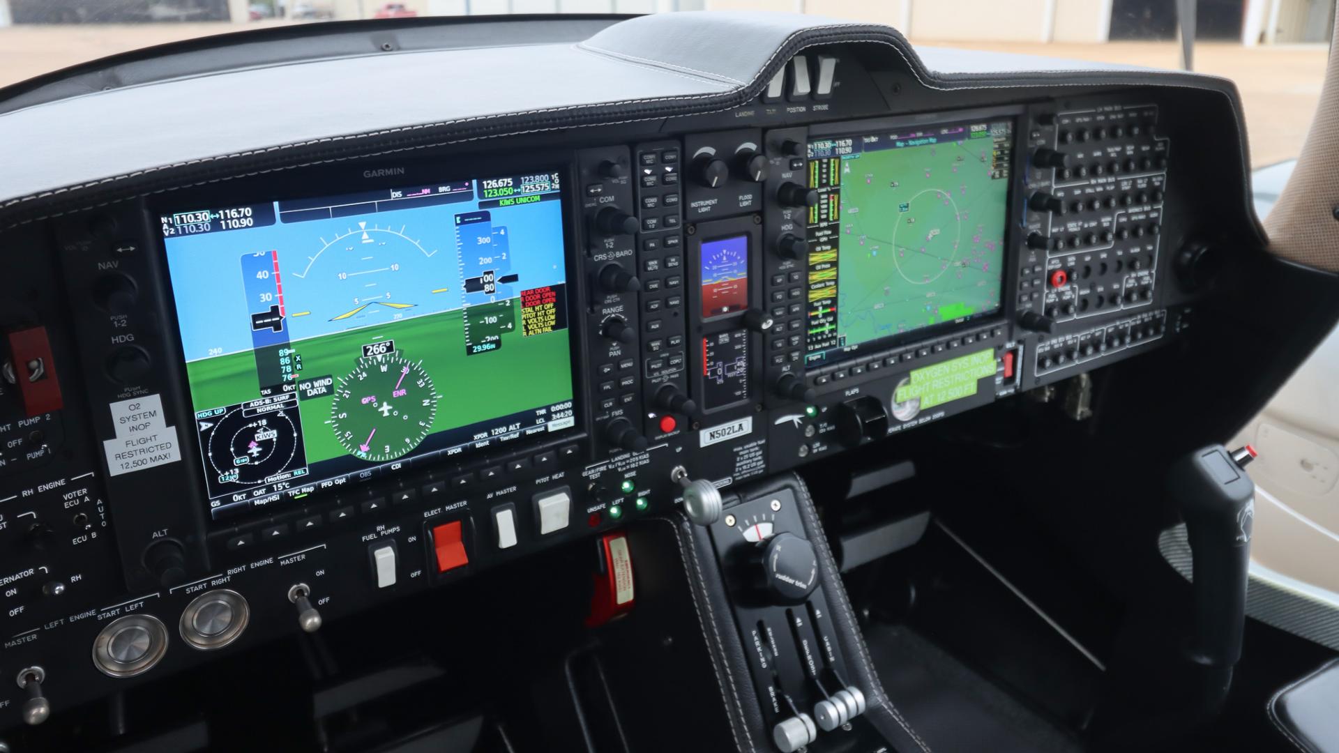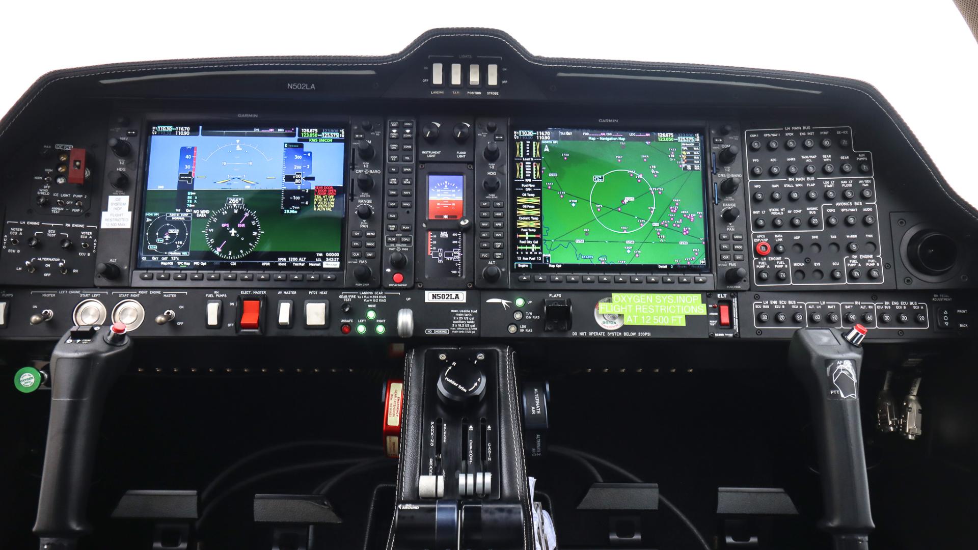 Dual Garmin GIA 64W with Integrated radio modules with WAAS-enabled IFR-approved GPS; VHF navigation with ILS; and VHF communication with 16-watt transceivers Garmin 7 Place Intercom System Garmin FliteCharts (subscription required) Garmin G1000 NXi Garmin GDU1040, 10 Inch Multi Function Display (MFD), Moving map, Terrain, Traffic, Obstructions, EFIS, Flight Planning, Airport Data, GPS Satellite Data, Multi-Function Menus Garmin GEA 71 Airframe/Engine Interface Unit Garmin GFC-700 Automatic Flight Control System Including Yaw Damper Garmin GMA 1347 Digital Audio System Garmin GTX345R ADS-B In/Out Transponder Garmin GWX 70 Weather Radar Garmin Synthetic Vision Technology (SVT) Garmin TAWS-B Terrain Awareness System GEA71 Airframe/Engine Interface Unit GFC 700 Flight Director GMU44 Magnetometer |
