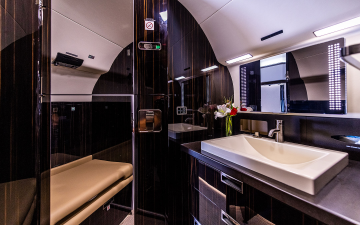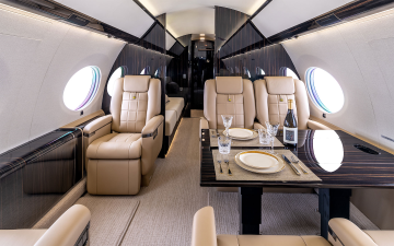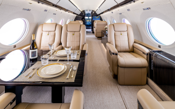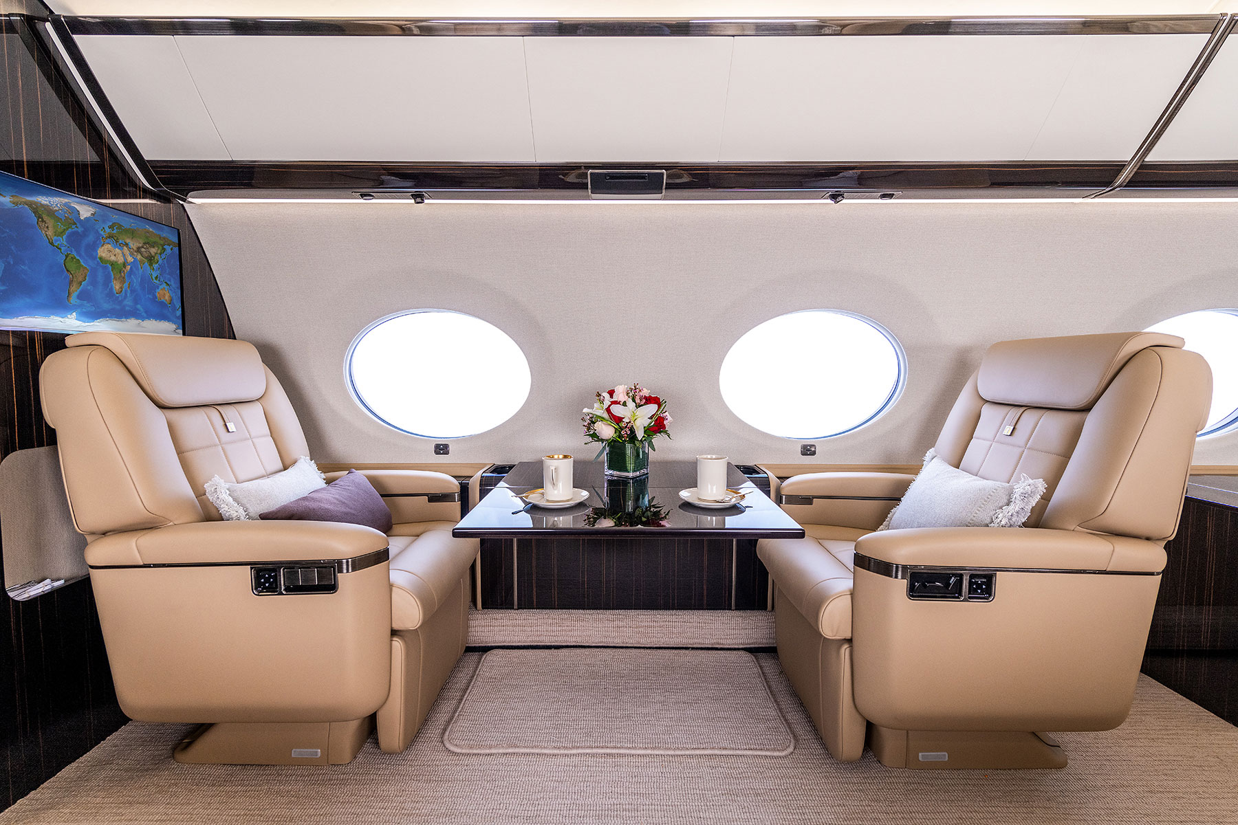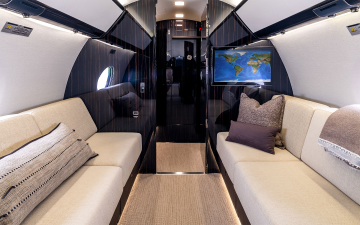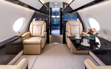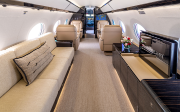 Plasma Ionization System Dual Autothrottle System Health Trend Monitoring System Cellular Data Transmissions Three (3) External HD Cameras Powered Divan (RH Side) Aft Cabin Flight Deck Privacy Curtain Passenger Control Units (PCU) Electric Window Shades Electric Wine Chiller Door / Drawer Activated LED Lighting Entryway Acoustical Door Maintenance Storage Box |