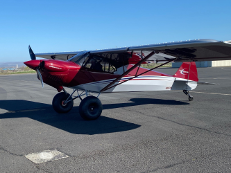Fuel Capacity: 40g Extended Range Fuel Tanks Empty Weight: 1189 Gross Weight: 2000 40g extended range fuel tanks Lightweight LED nav and strobe lights, with Wig-Wag Landing Lights Gap Seals on Elevator and Rudder Medium weight Stits Polyfiber fabric Ground loop; completely new components installed from CubCrafters Factory Float kit installed on the fuselage Fuel sight gauges Inertial Reel 4 Point seat belt system for Pilot and Co-pilot Complete 4130 Steel reinforced fuselage Dogleg frame in baggage area Super Cub airfoil – USA35(B) Vortex Generators for sub 38 mph stall speed 811 lb Useful load |