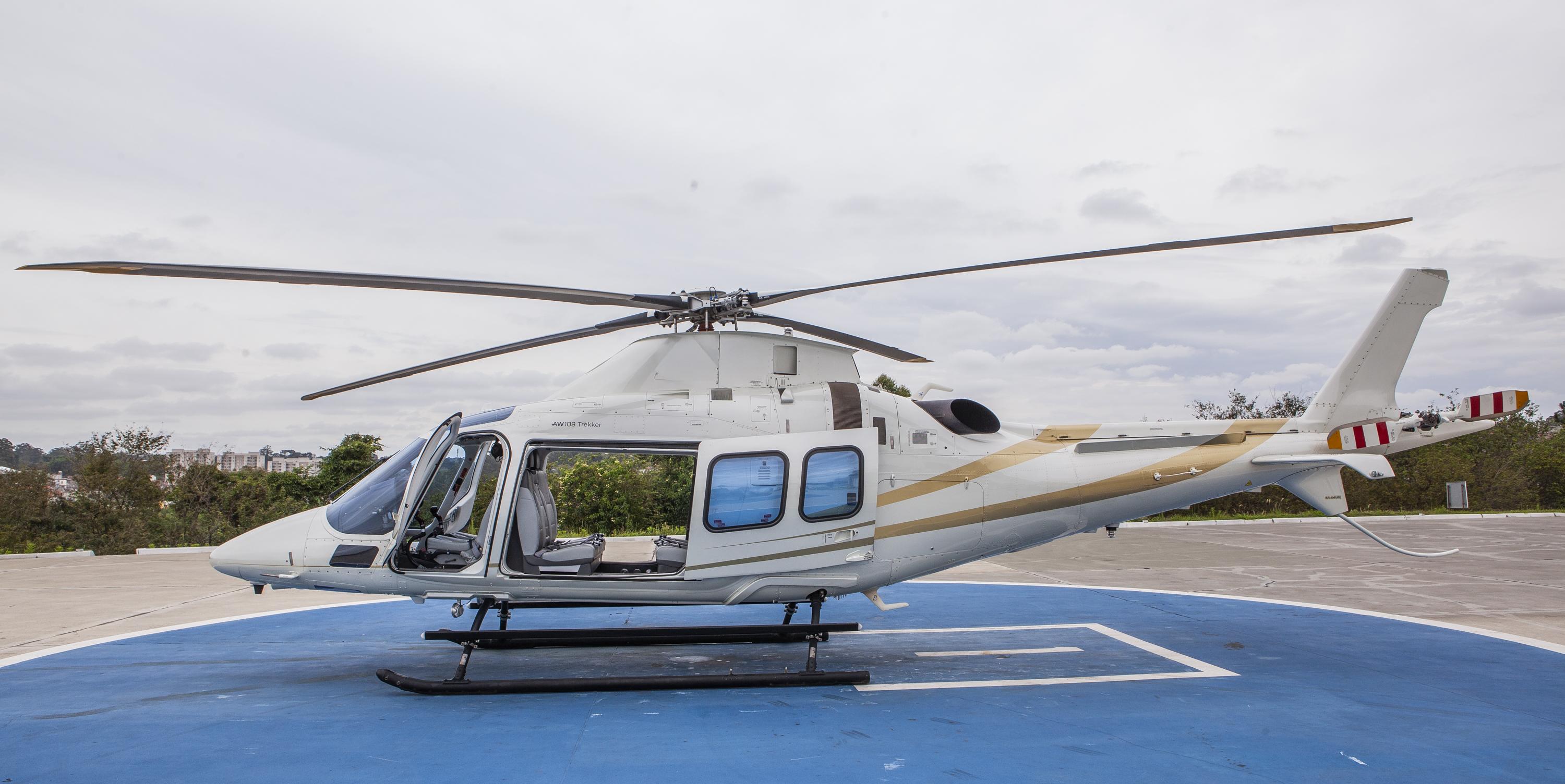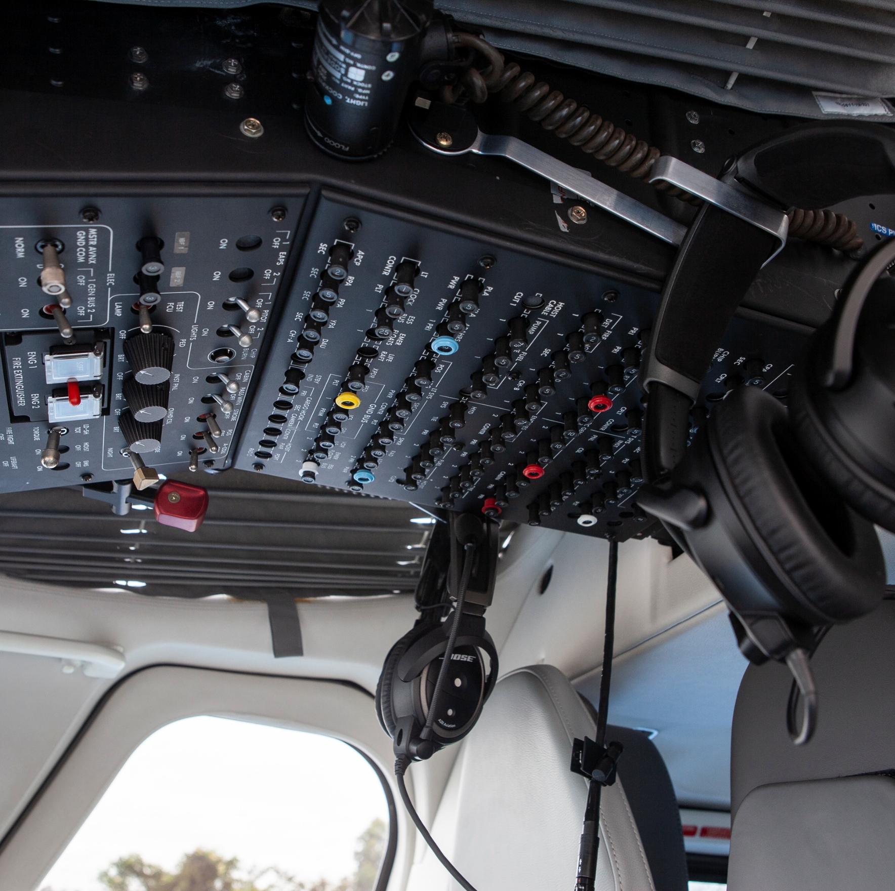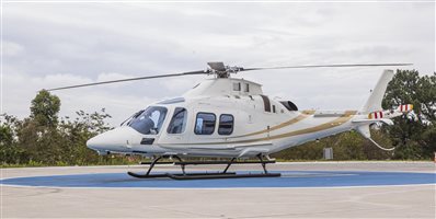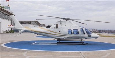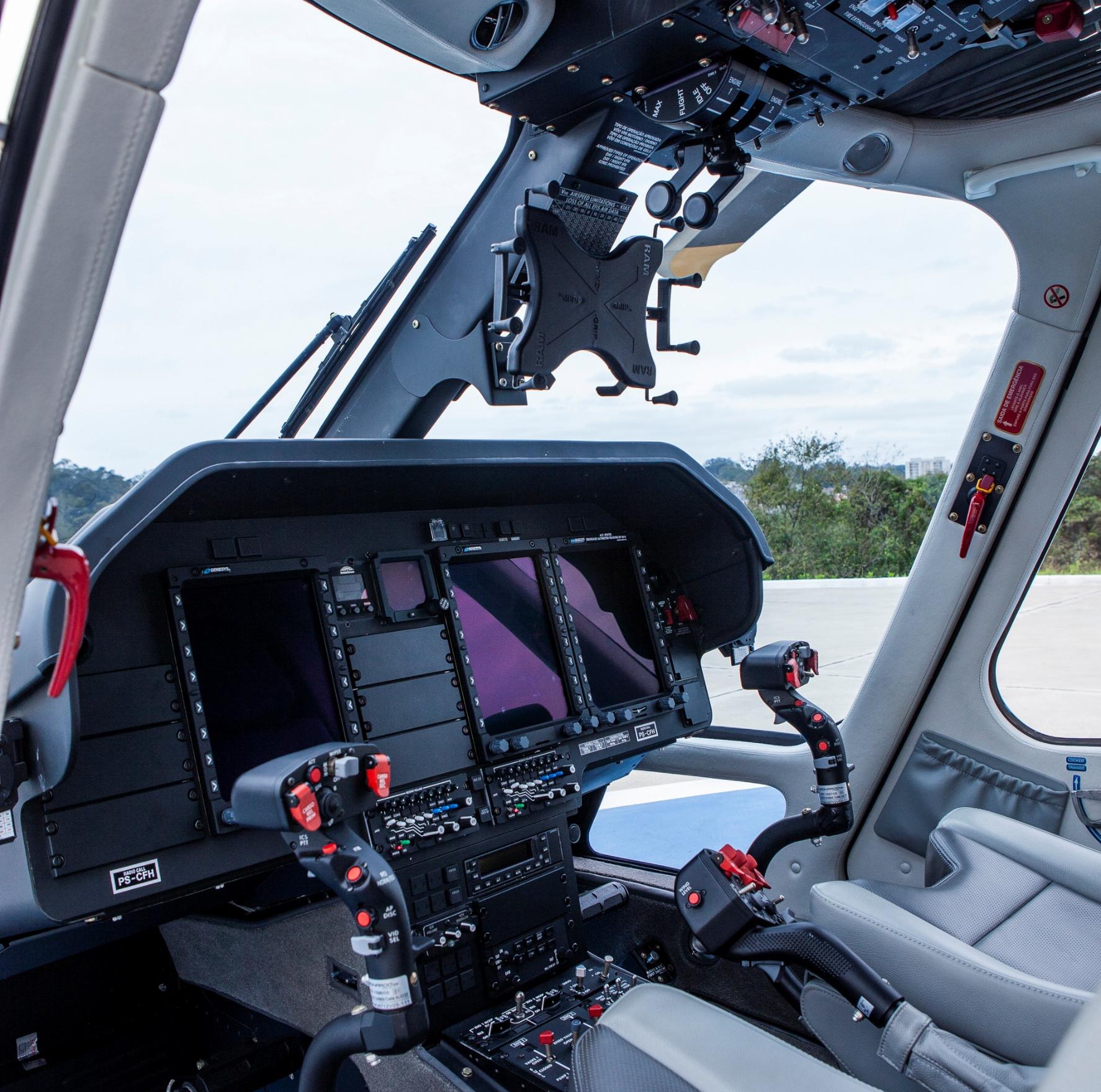 Executive interior – 6 places VIP Passenger cabin including: Sound proofing, liners leather or leatherette covered, cabin loudspeakers (2), reading lights, advisory lights, floor courtesy lights, upper and lower air vents, VIP cabin finishing VIP Cockpit package including: Interseat console tray with 12 V power supply, multipurpose holder with space for fire extinguisher, door pockets (RH and LH), headset hooks (2), cyclic and collective leather gators, cockpit curtains, VIP cockpit finishing Three crashworthy forward-facing seats (aft bench), leather covered, foldable armrests Three crashworthy aft-facing seats (central bench), leather covered, see-through modification, foldable armrests 4-point shoulder harness with inertial reels and safety belts for all passenger seats Cabin double layer acrylic windows (azure) Headsets Bose ANR type (6) Floor carpeting |