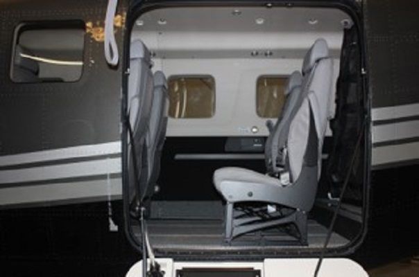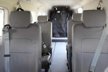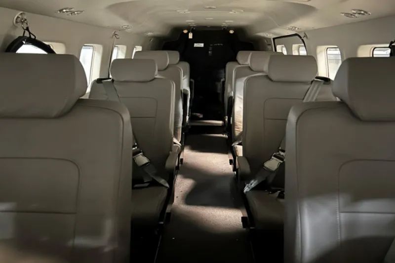 8- Seats finished in light grey leather, fairings and overhead panels. Charcoal carpet with matching Lower Side Panels. |